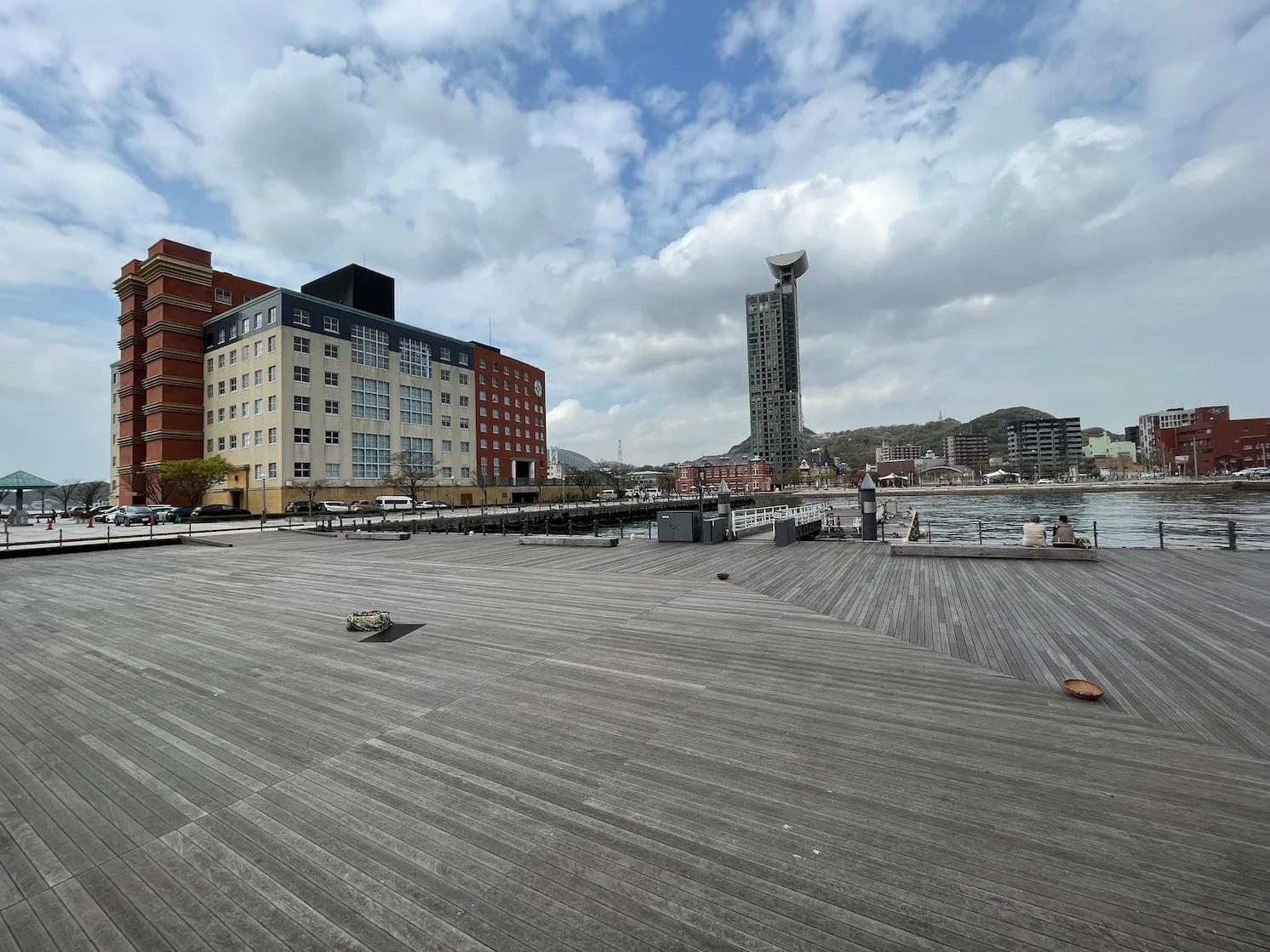 나무 바닥으로 된 광장 비슷한 곳이에요. 잠시 쉴 수도 있고 오른편에는 모지코 레트로 해협플라자라는 이름의 쇼핑몰도 있어 간식이나 식사 등을 해결할 수도 있어요.