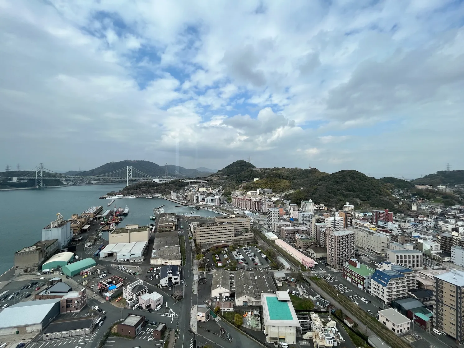 끝자락으로 가 보니 저 멀리 칸몬대교가 보이네요.