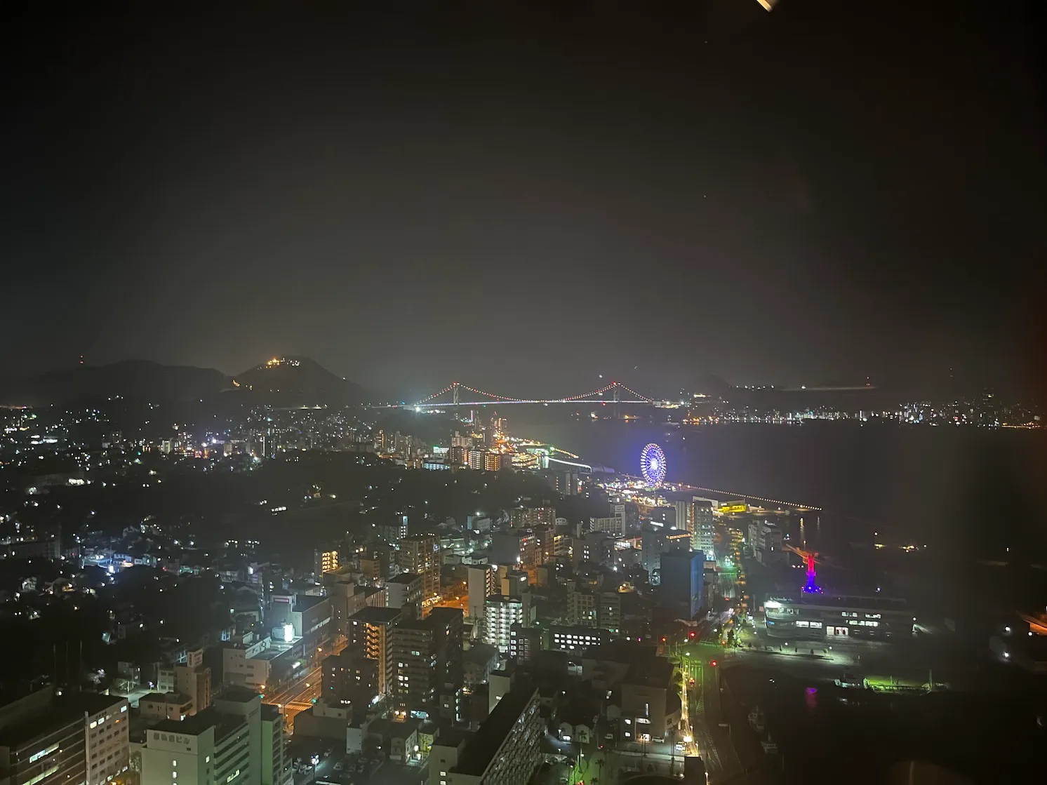 아래쪽에 보이는 제가 오늘 묵는 호텔인 '도미 인 시모노세키', 그리고 중간에서 오른쪽으로 보면 밝게 보이는 것이 시모노세키역과 그 주변이네요.