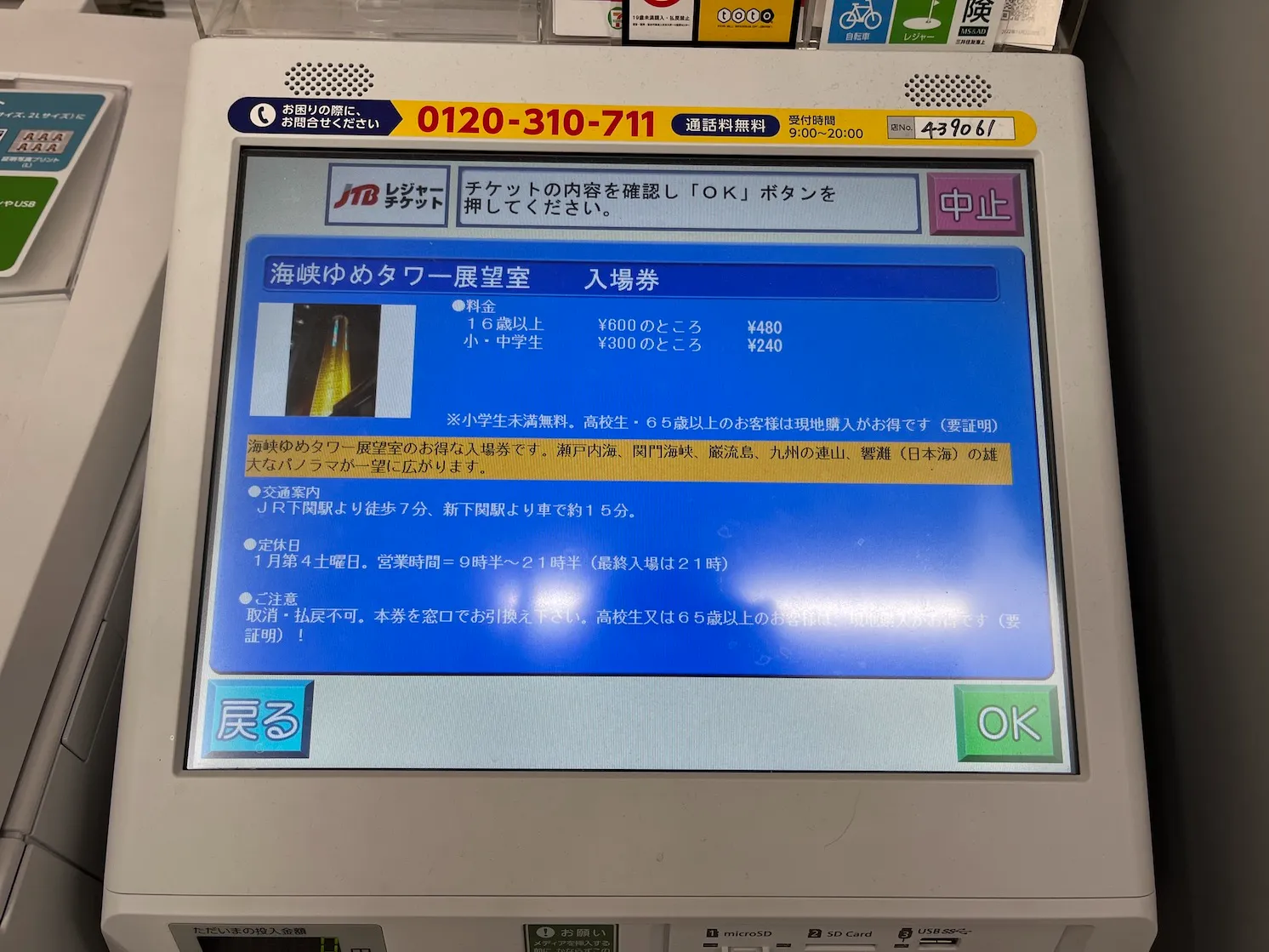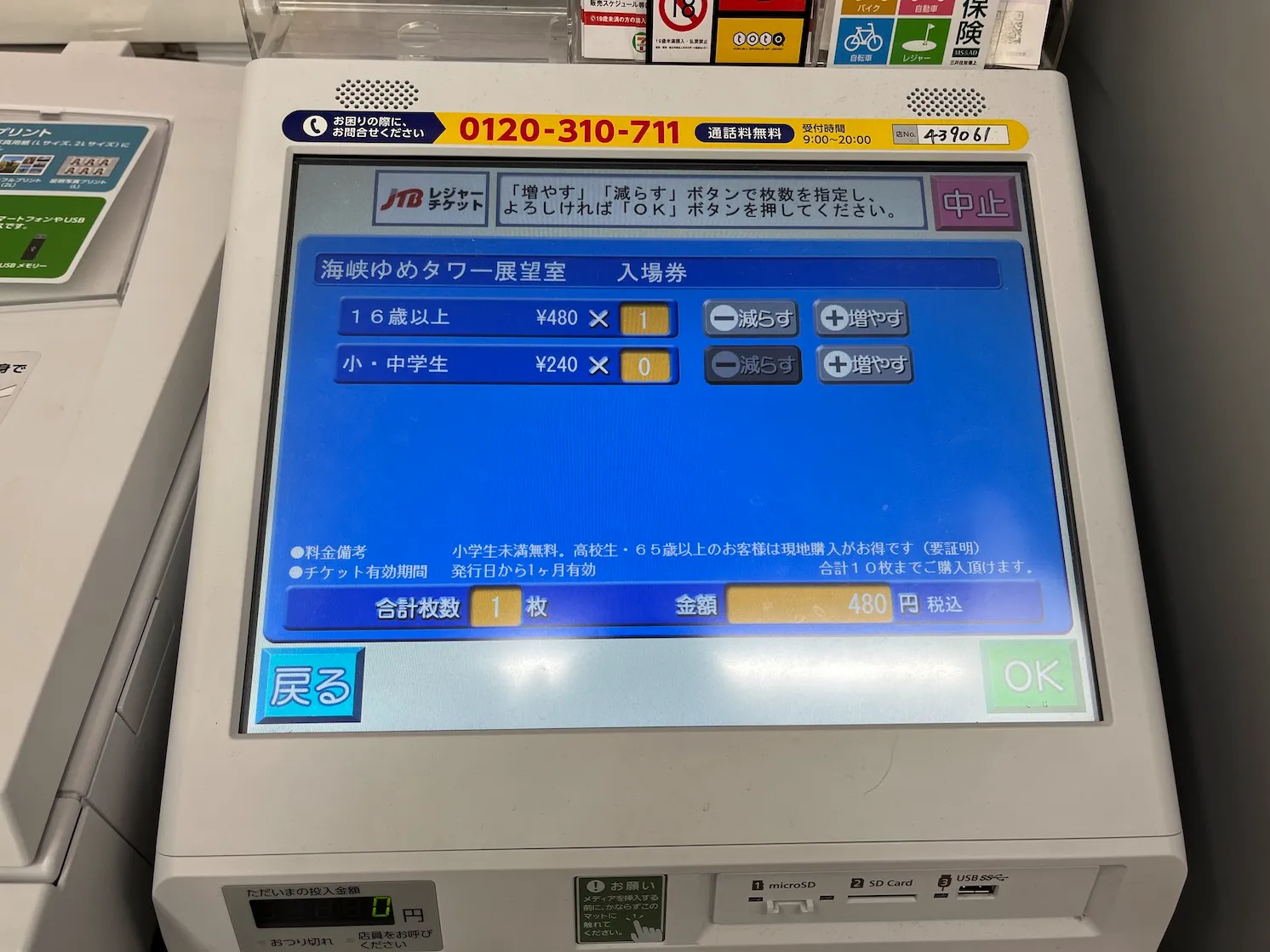 식사를 마치고 카이쿄유메타워가 아직 열려있는 시간이라 편의점에서 편의점 티켓으로 카이쿄유메타워 전망대 입장권을 구입했어요.