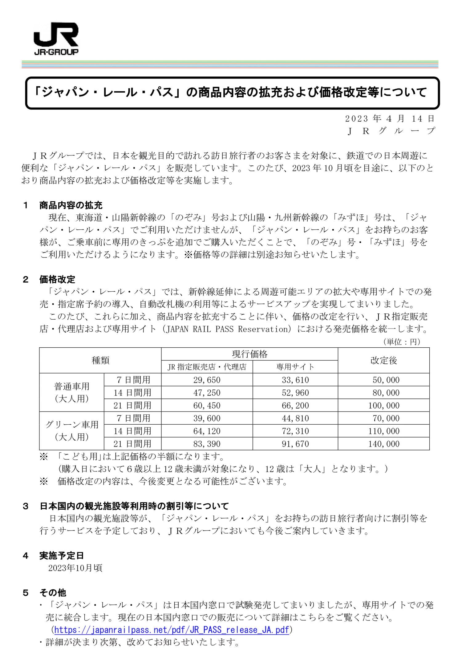 JR패스 전국패스(재팬 레일 패스) 요금 인상 및 개편에 대한 소식