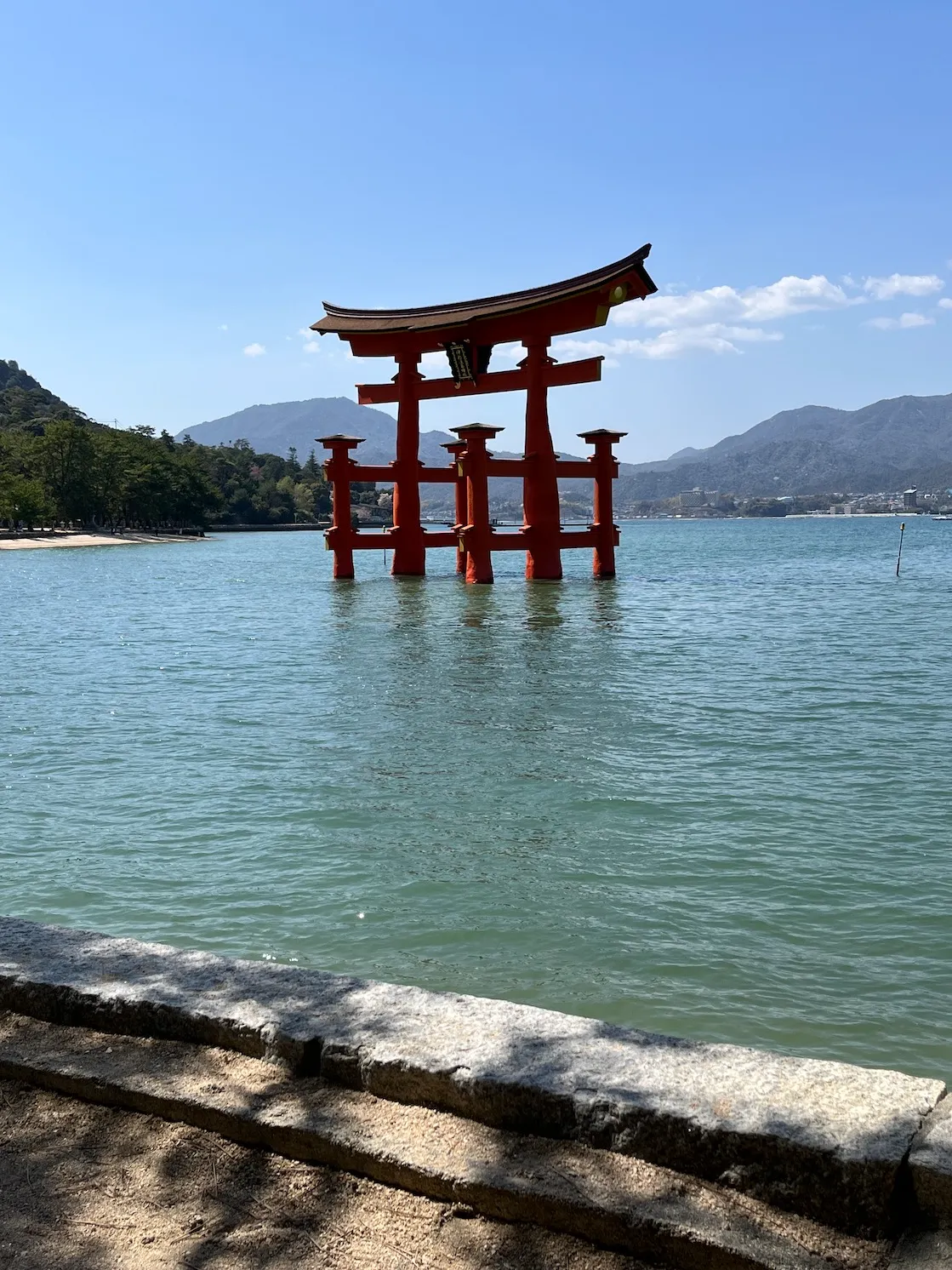 아까 페리에서 봤던 바다에 떠있는 붉은 토리이가 가까이 보여서 찍어봐요.