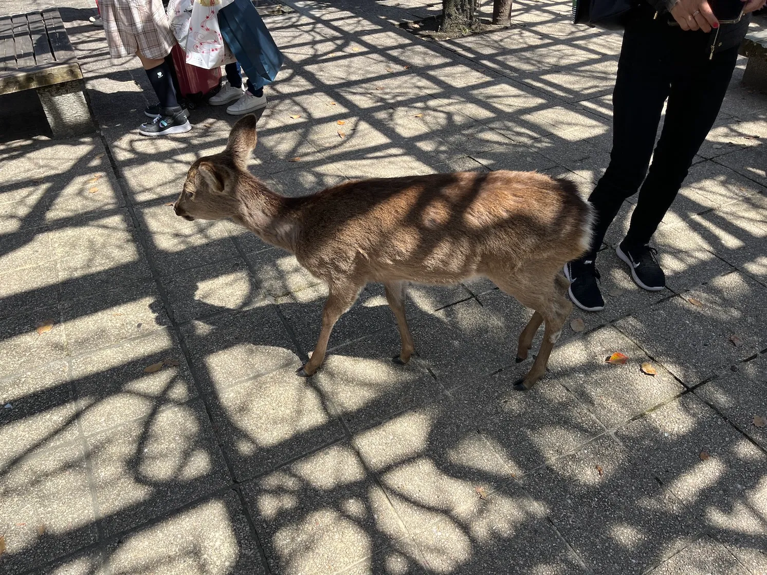 이렇게 사람들에 섞어 돌아다니는 사슴을 곳곳에서 볼 수 있어요.