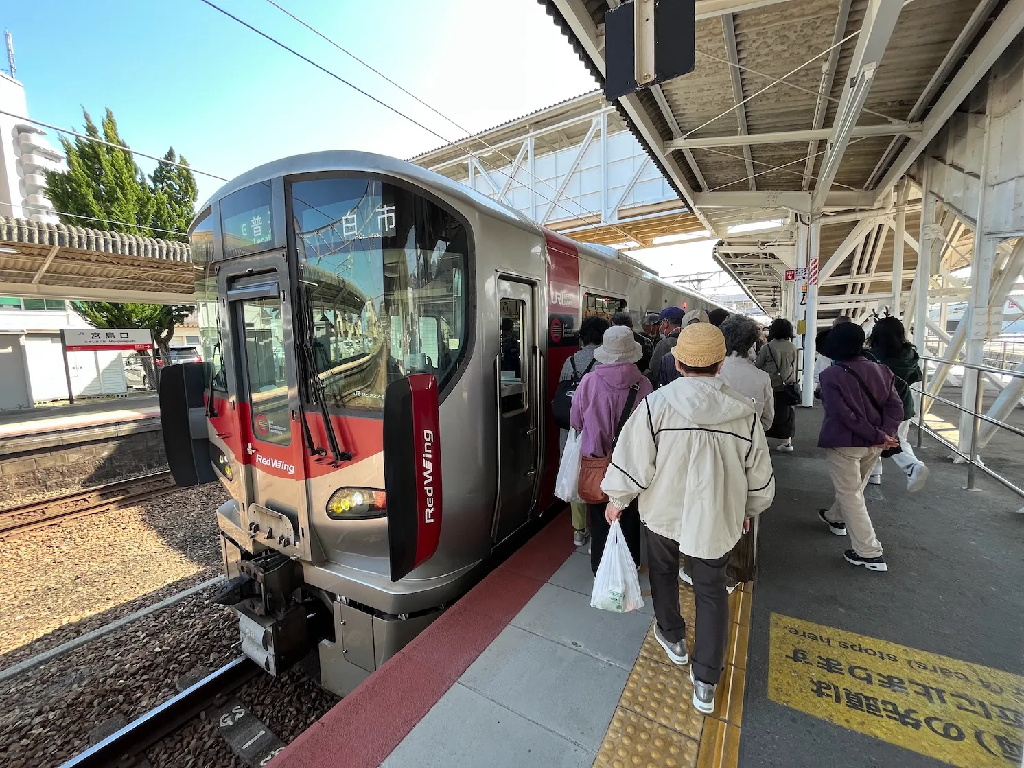 여기는 미야지마구치 부두 승선장에서 가까운 역인 '히로덴미야지마구치역'이에요.