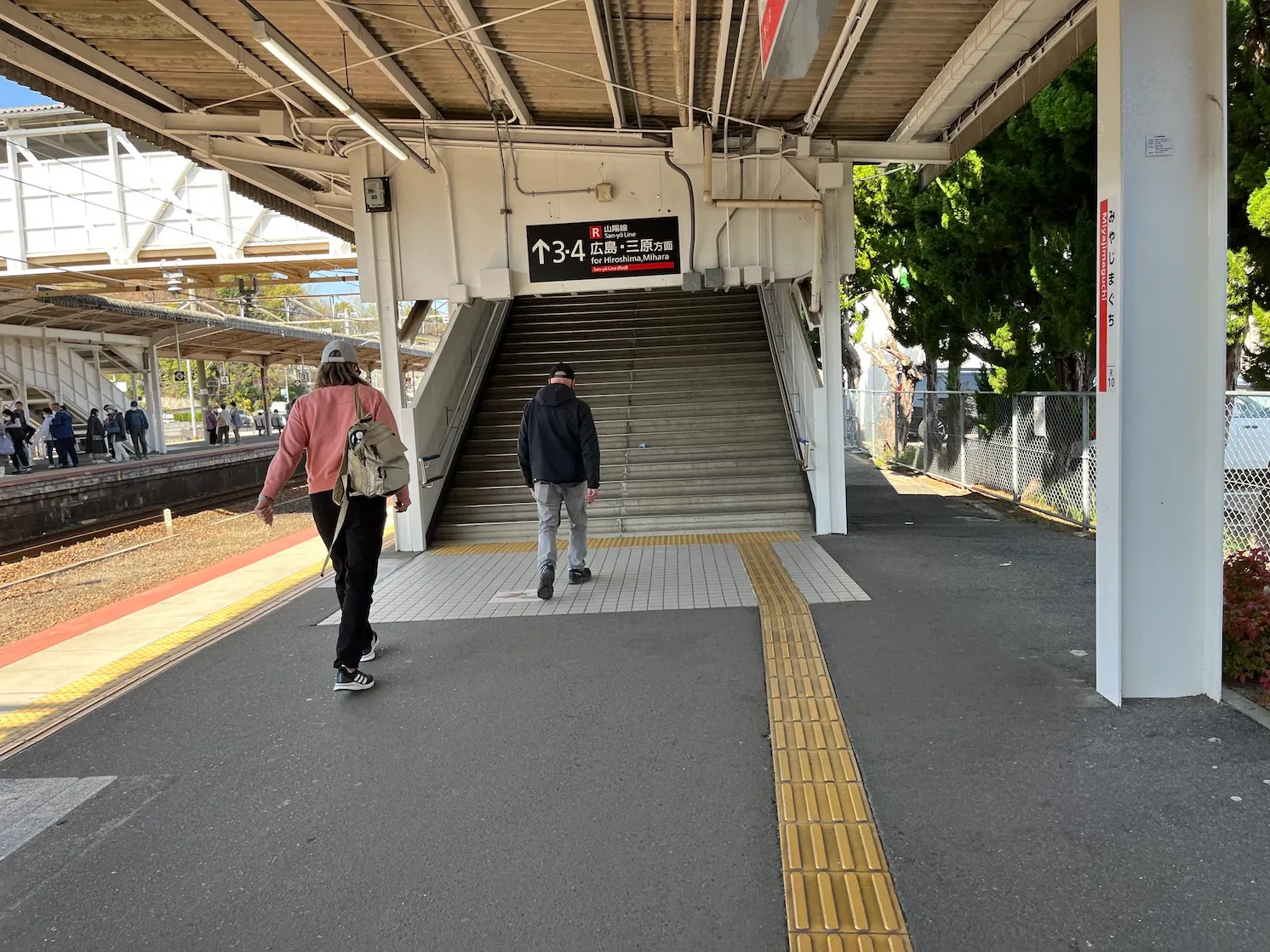 히로시마로 가는 열차는 맞은편에서 타야하기 때문에 육교처럼 생긴 곳으로 넘어가요.