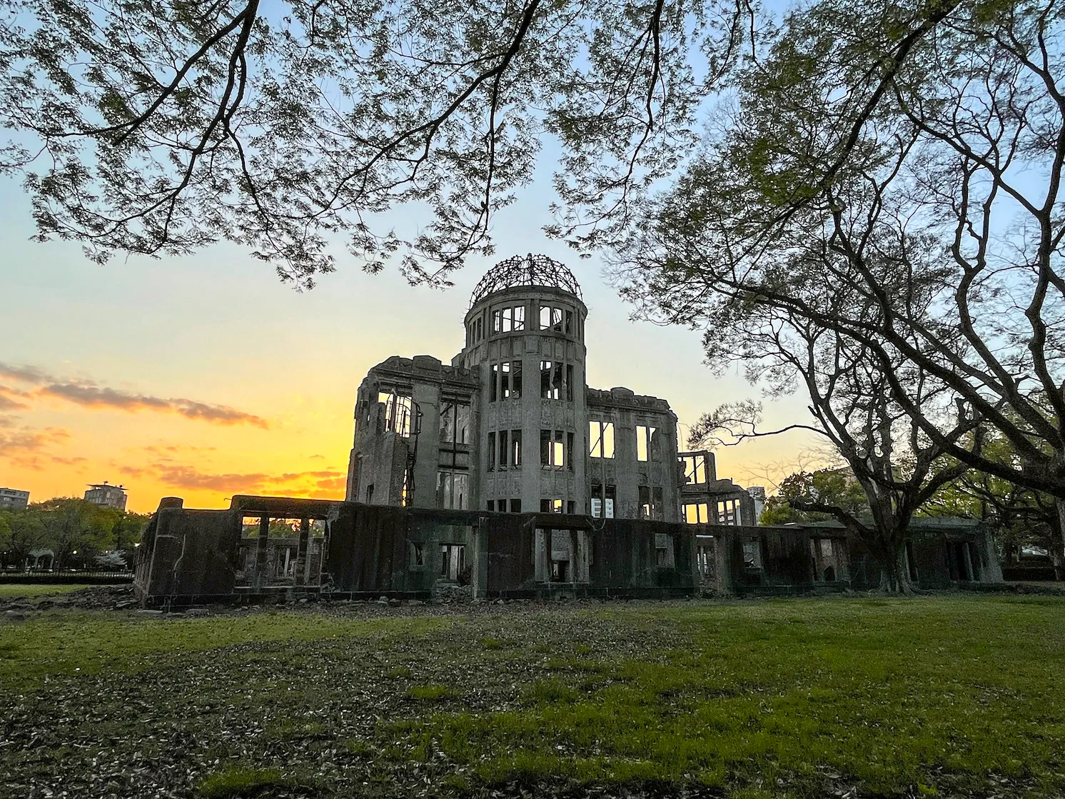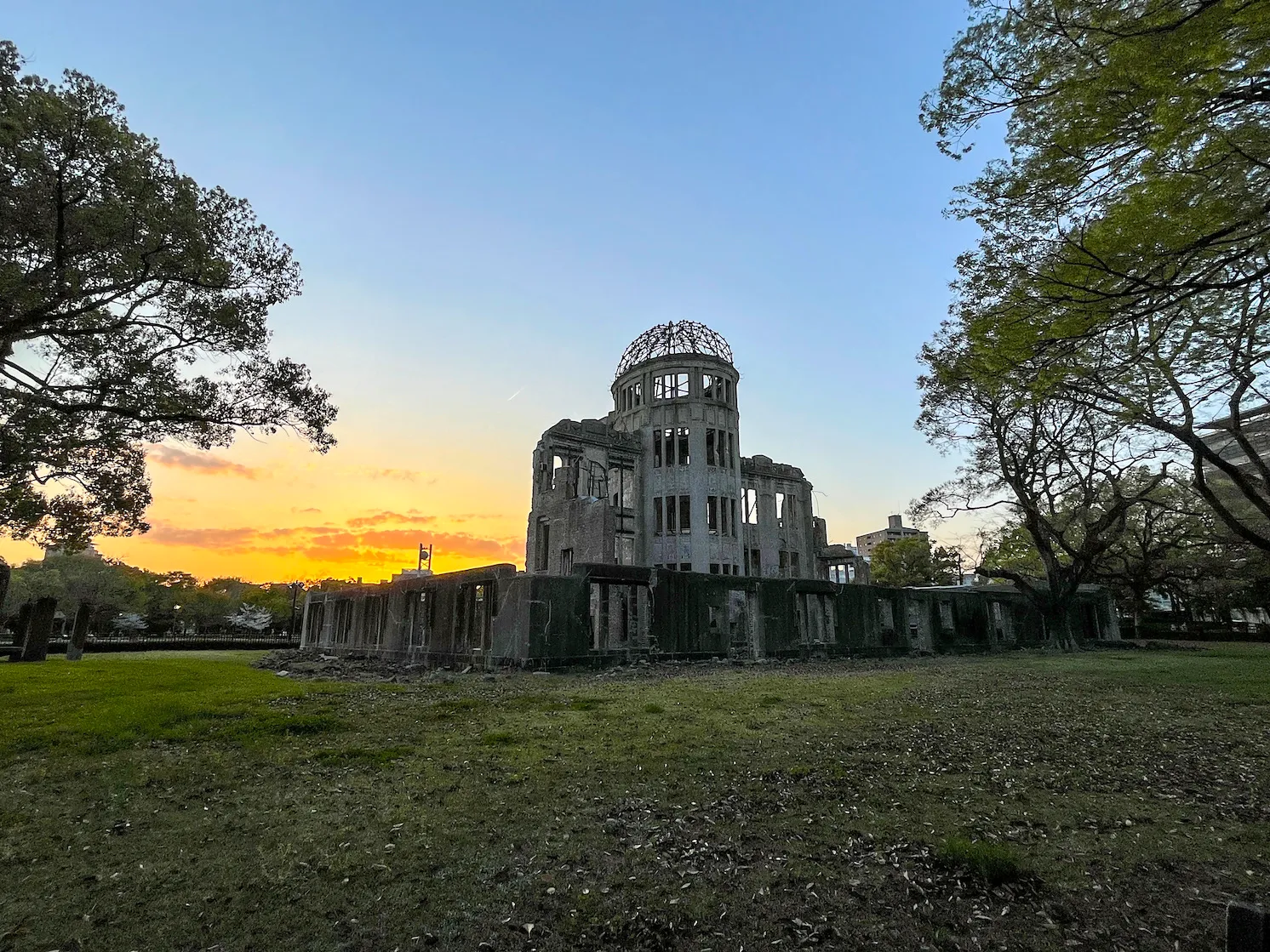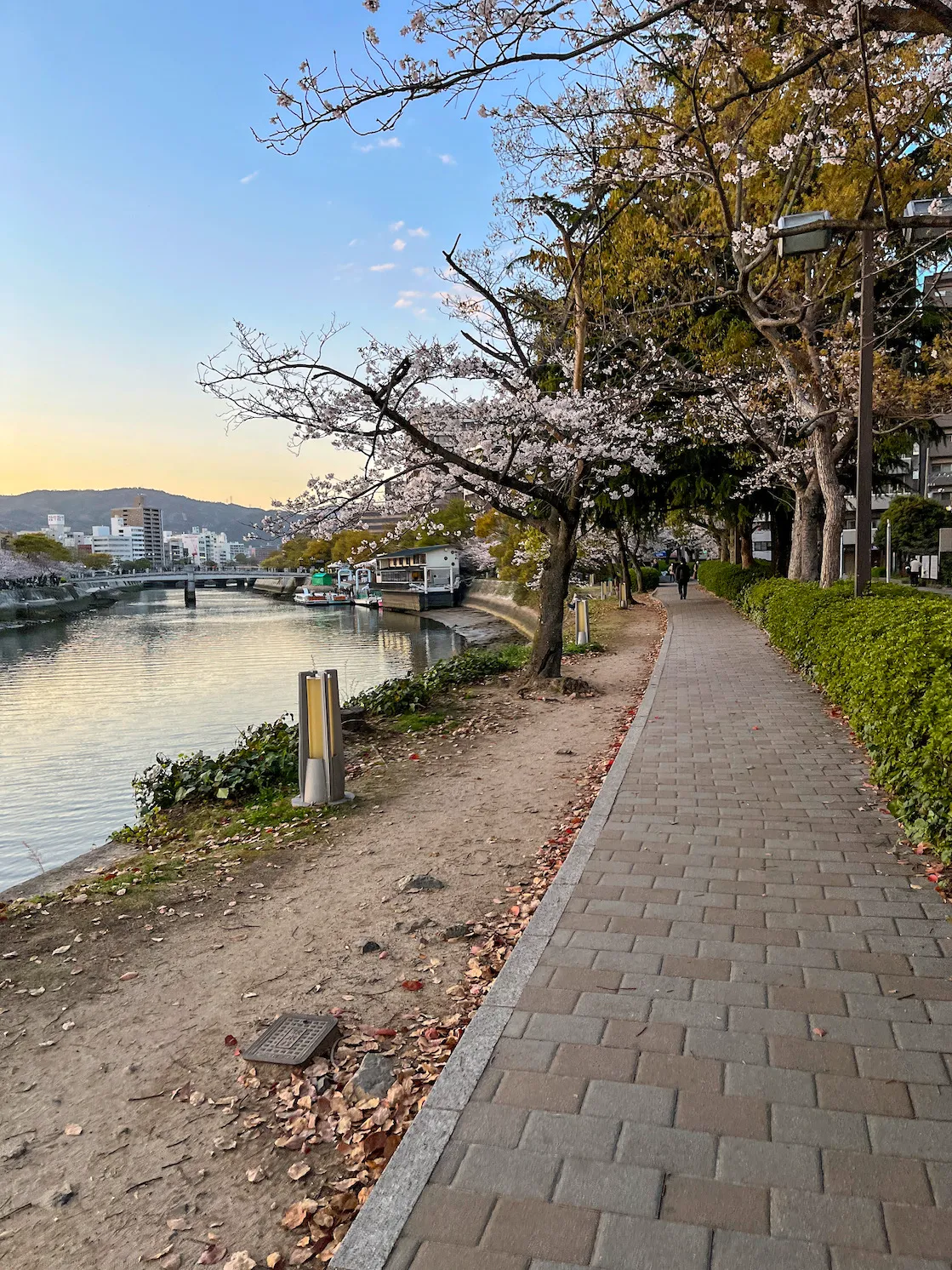 해가 지는 중이라서 해가 지기 전에 원폭돔을 먼저 보려고 생각해서 가는 중이에요.