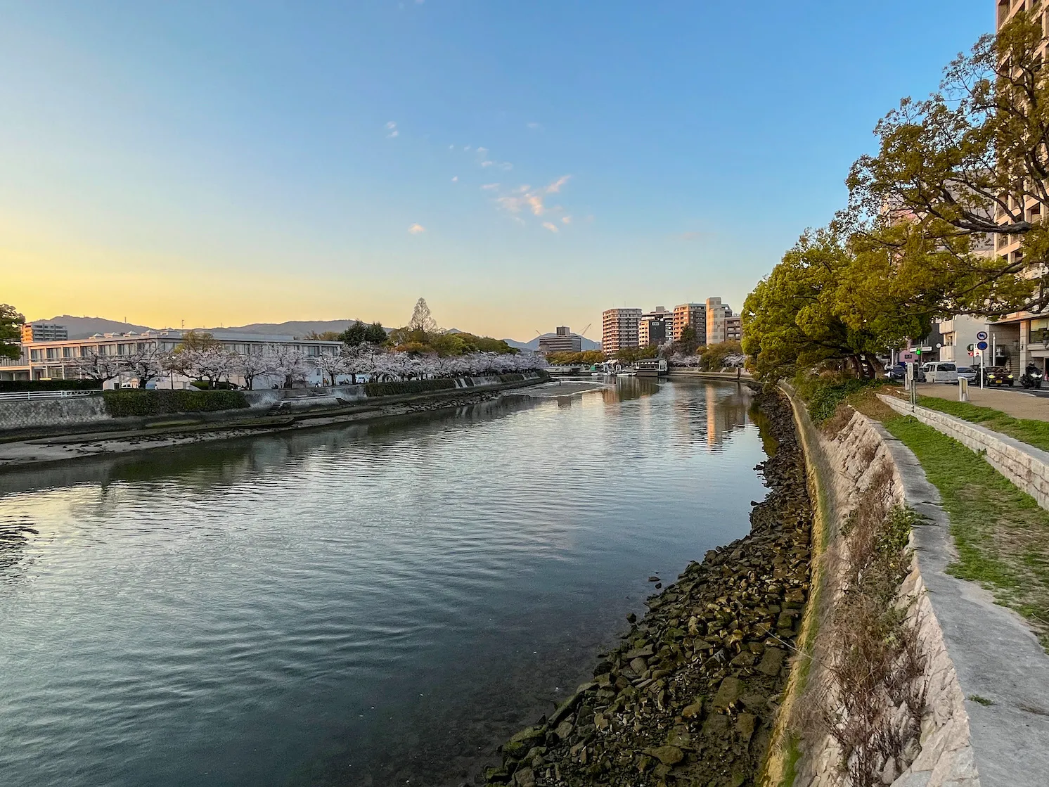 강을 사이에 두고 저 너머는 히로시마 평화공원이에요.