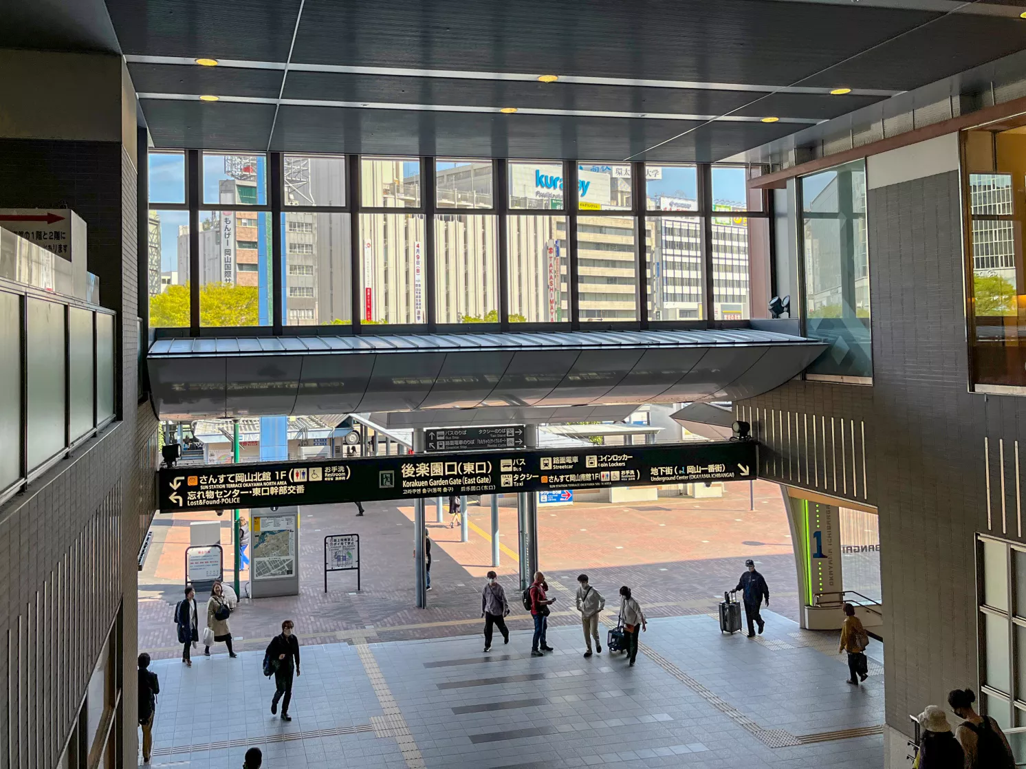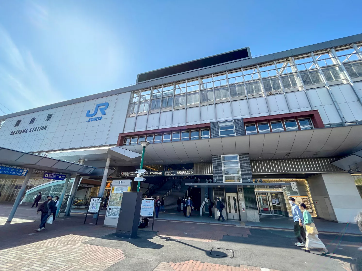 호텔로 가려면 지하로 가는 게 최단거리고 횡단보도도 없는데 오카야마역을 찍지 않았던 게 생각나 잠시 밖으로 나와 역을 찍었어요.
