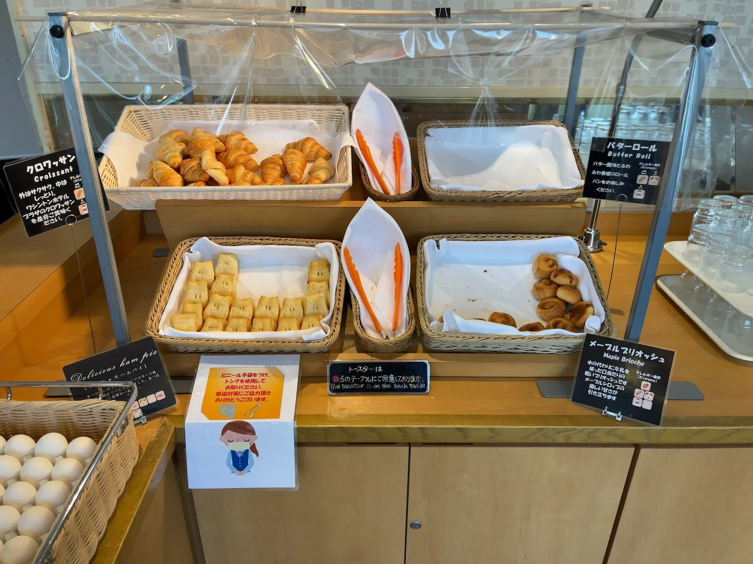 위에 찍은 조식코너를 넓게 담은 2장의 사진은 먹고 나오면서 찍은 것이고, 사실 처음 왔을 시점에는 4개 중 버터롤은 다 소진된 상황이었어요.