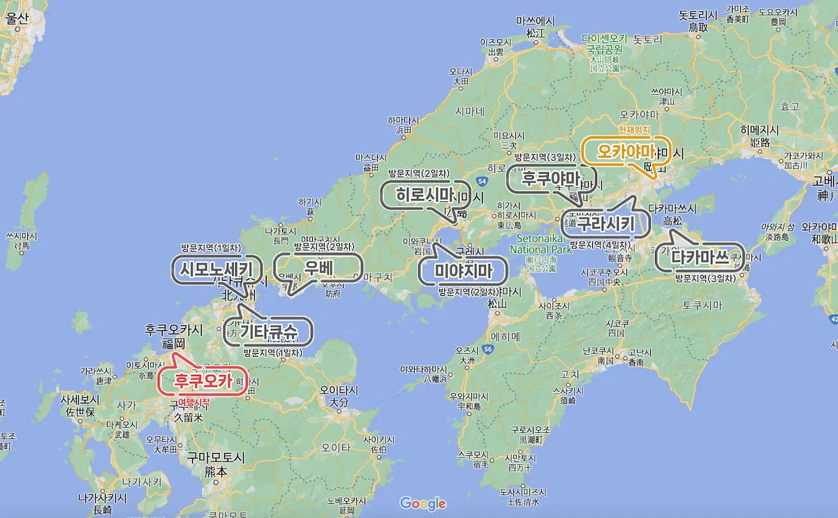 올 때와 마찬가지로 산요 본선을 타고 오카야마로 돌아갈 예정이에요.