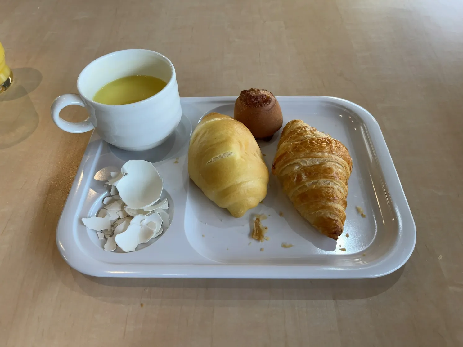 빵, 수프, 주스, 커피 정도로 구성된 간단한 조식이지만 어차피 아침을 호화롭게 먹지 않는 편이라 괜찮겠다 싶어서 예약할 때부터 이용할 생각이었어요.