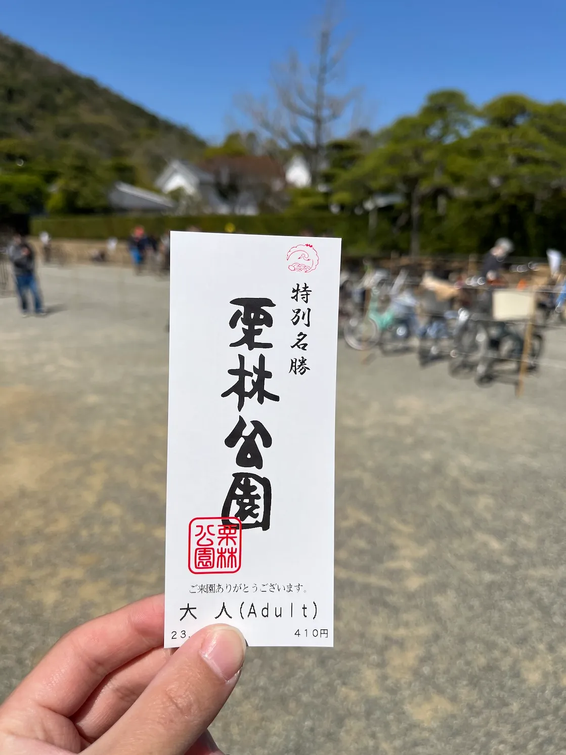 리쓰린공원의 입장료는 410엔이에요.