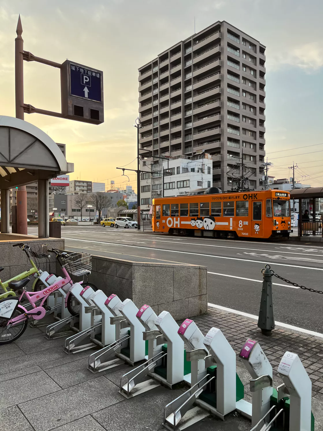 해가 지는 방향으로 가면 오카야마역 방향인 것 같네요.