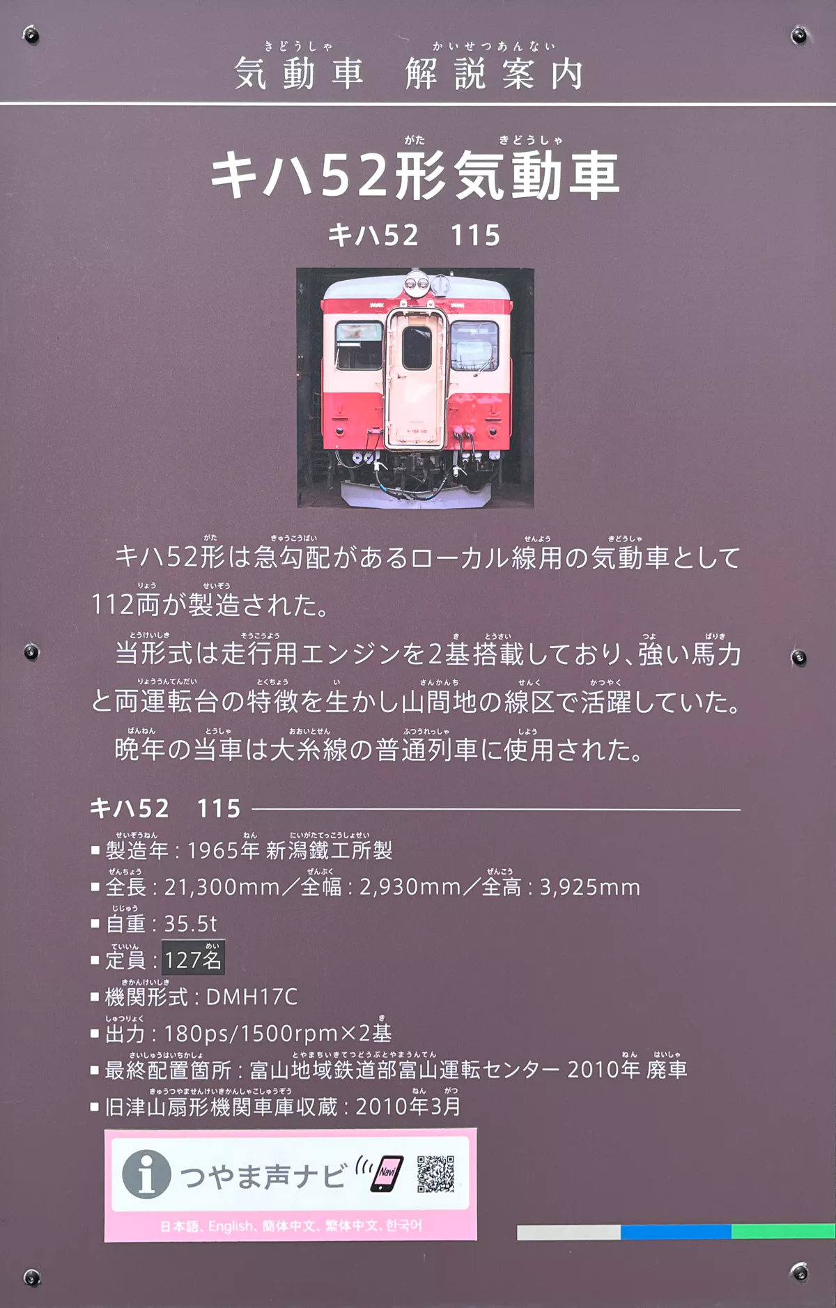 키하 52형은 급경사가 있는 지역선 용도의 기동차로 112량이 제조되었습니다.