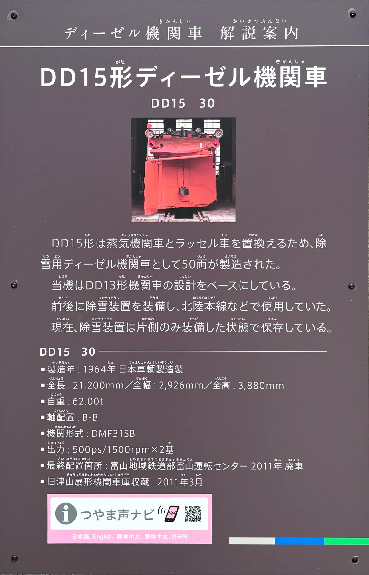 DD15형은 증기 기관차와 러셀 차량을 대체하기 때문에, 제설용 디젤 기관차로서 50량이 제조되었습니다.