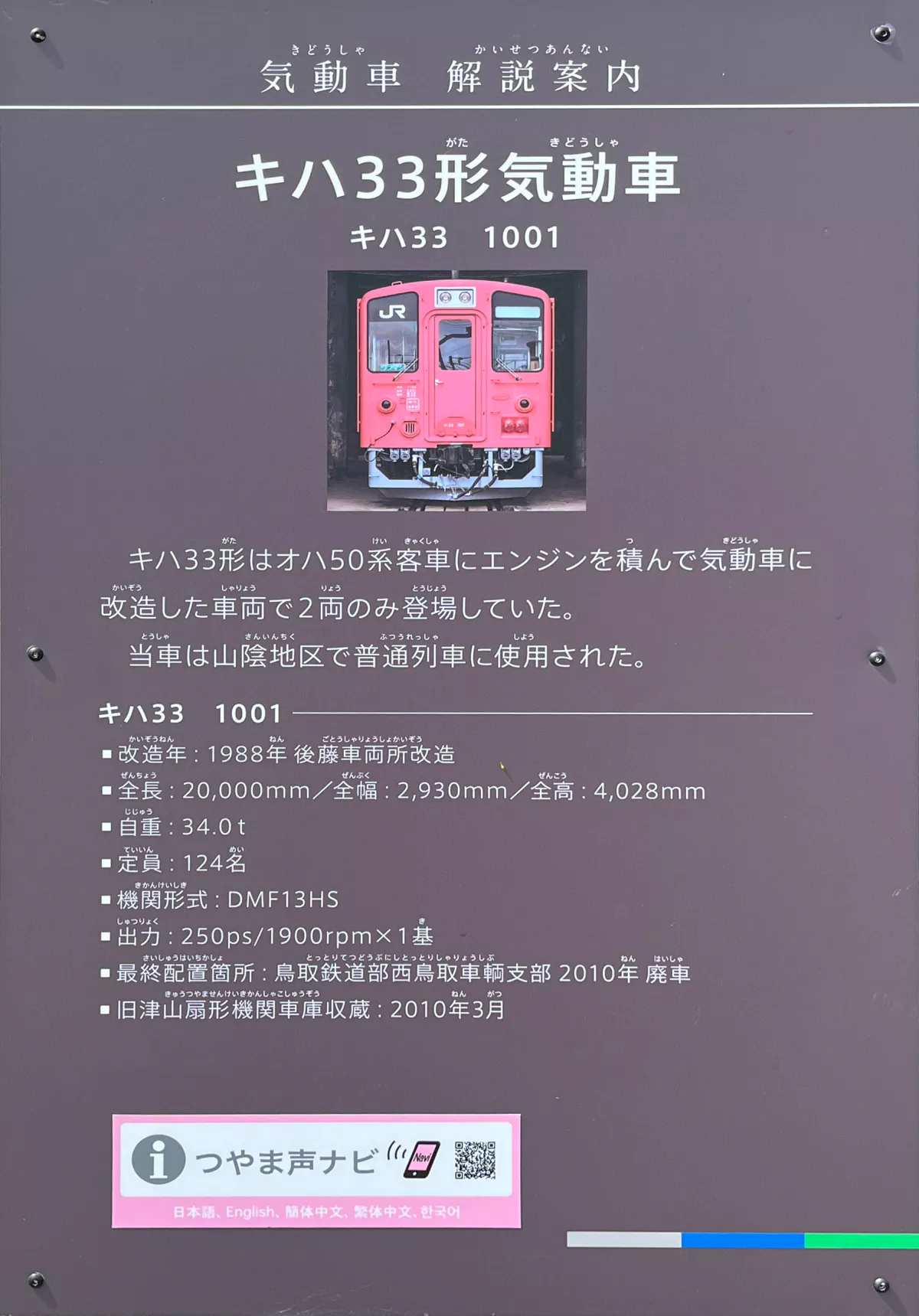 키하 33형은 오하 50계 객차에 엔진을 싣고 개조한 차량으로 2량만 있었습니다.