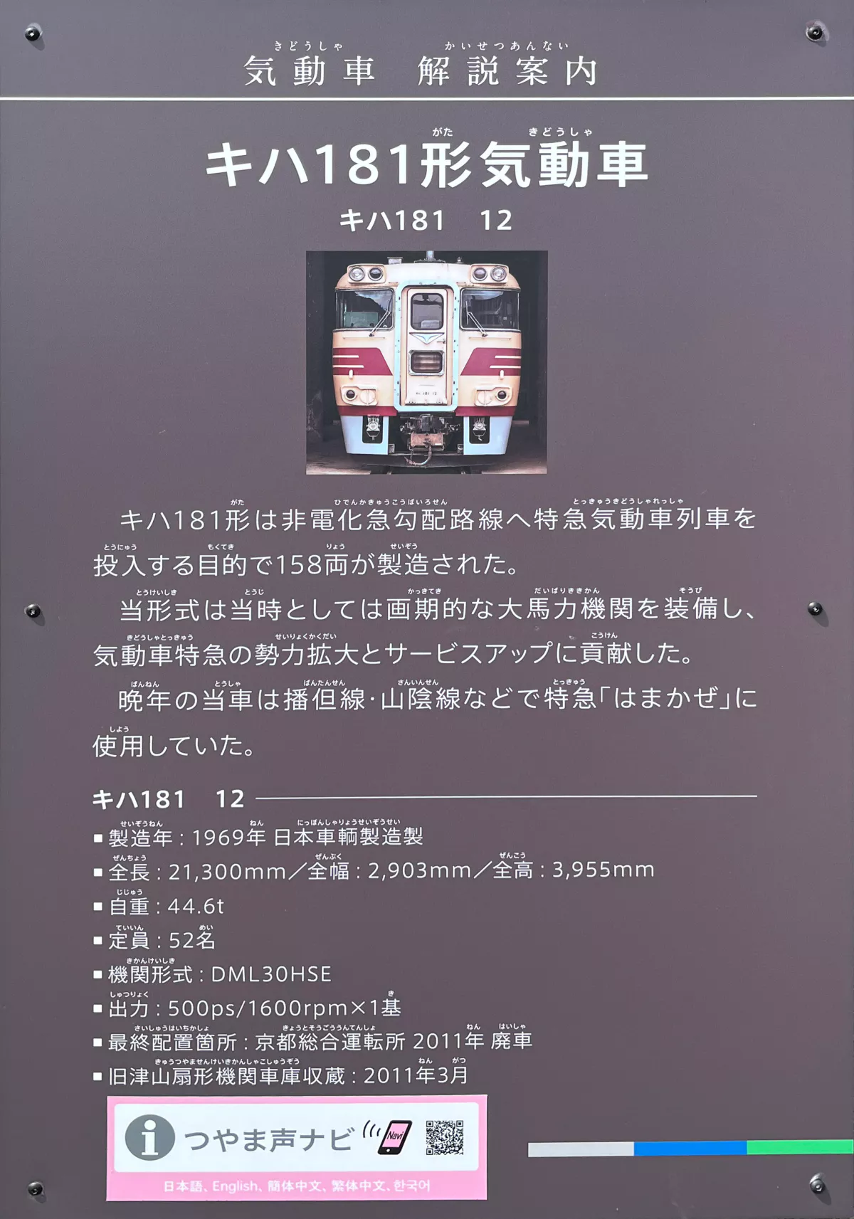 키하 181형은 비전화(전기 설비가 없어 전철이 다닐 수 없는 구간) 급경사 노선에 특급 기동차 열차를 투입할 목적으로 158량이 제조되었습니다.