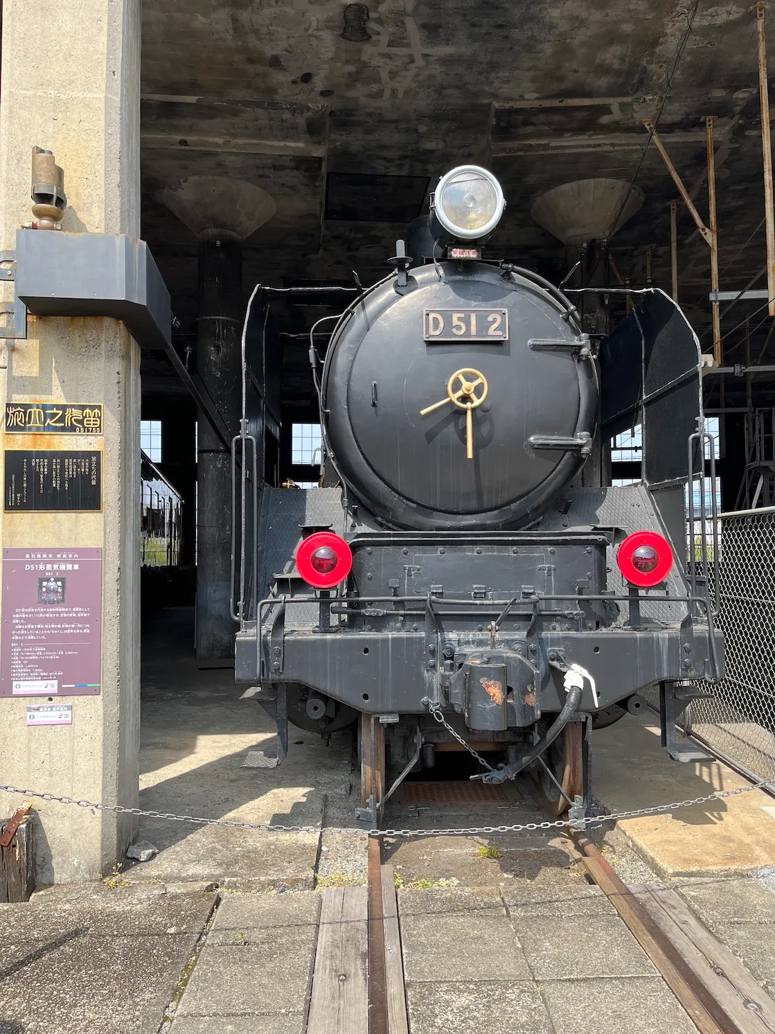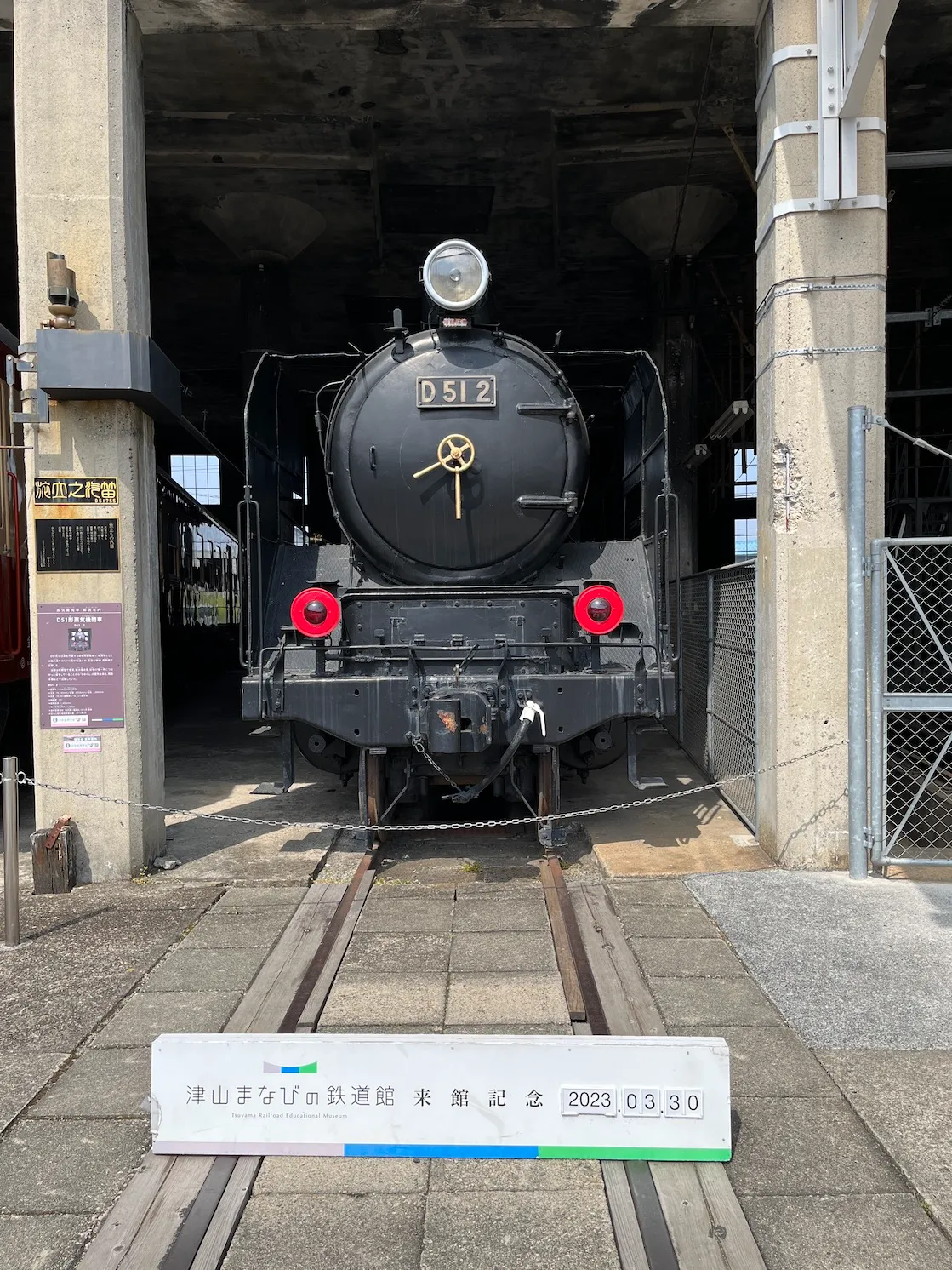 중간에 검은색 D51 증기 기관차 앞에 박물관 이름과 날짜가 적힌 패널이 있네요.