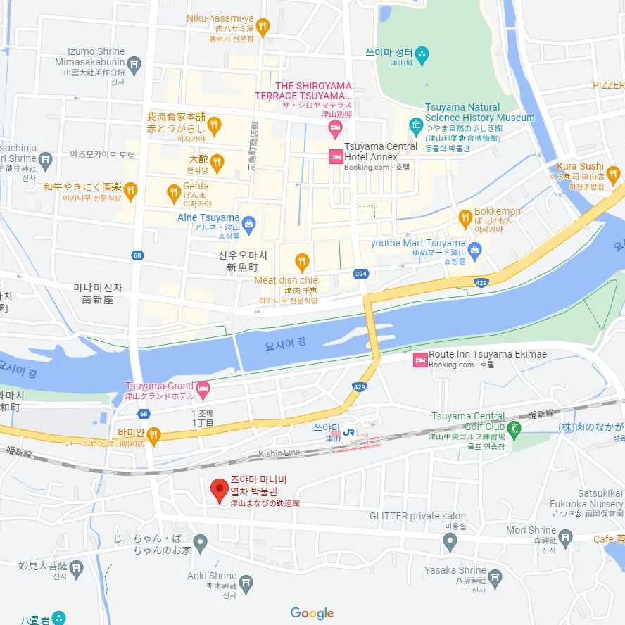 아래는 쓰야마 마나비 열차 박물관 홈페이지 링크와 구글 지도 링크에요.