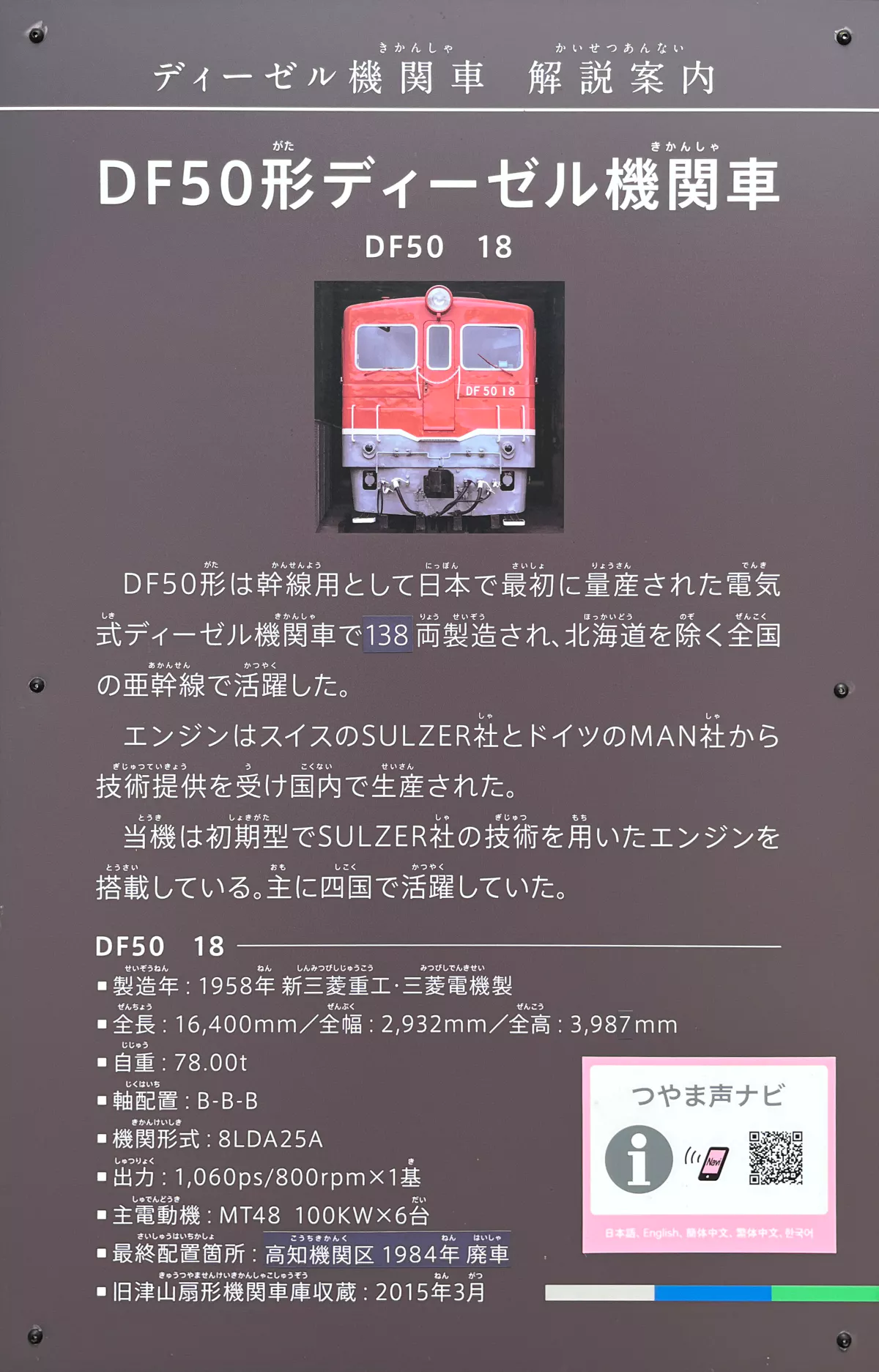DF50형은 간선용으로 일본에서 최초로 양산된 전기식 디젤 기관차로 138량 제조되어 홋카이도를 제외한 전국의 간선에서 활약했습니다.