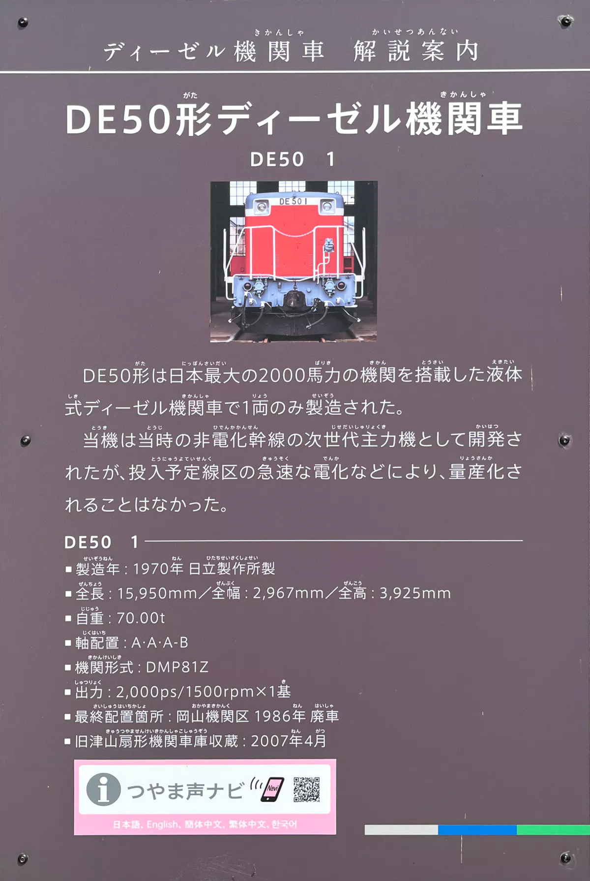 DE50형은 일본 최대인 2000마력의 기관을 탑재한 액체식 디젤 기관차로 1량만 제조되었습니다.