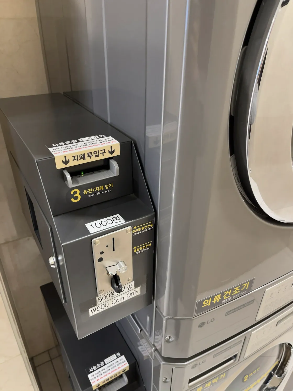 세탁은 2,000원, 건조는 1,000원입니다.