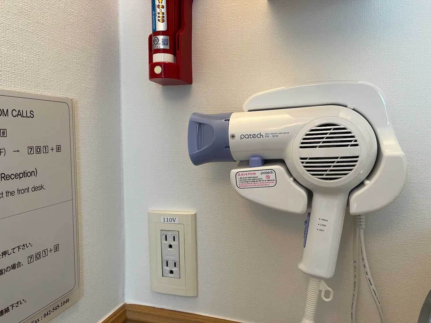 이 호텔은 110V 콘센트가 있는 것이 특이했습니다.