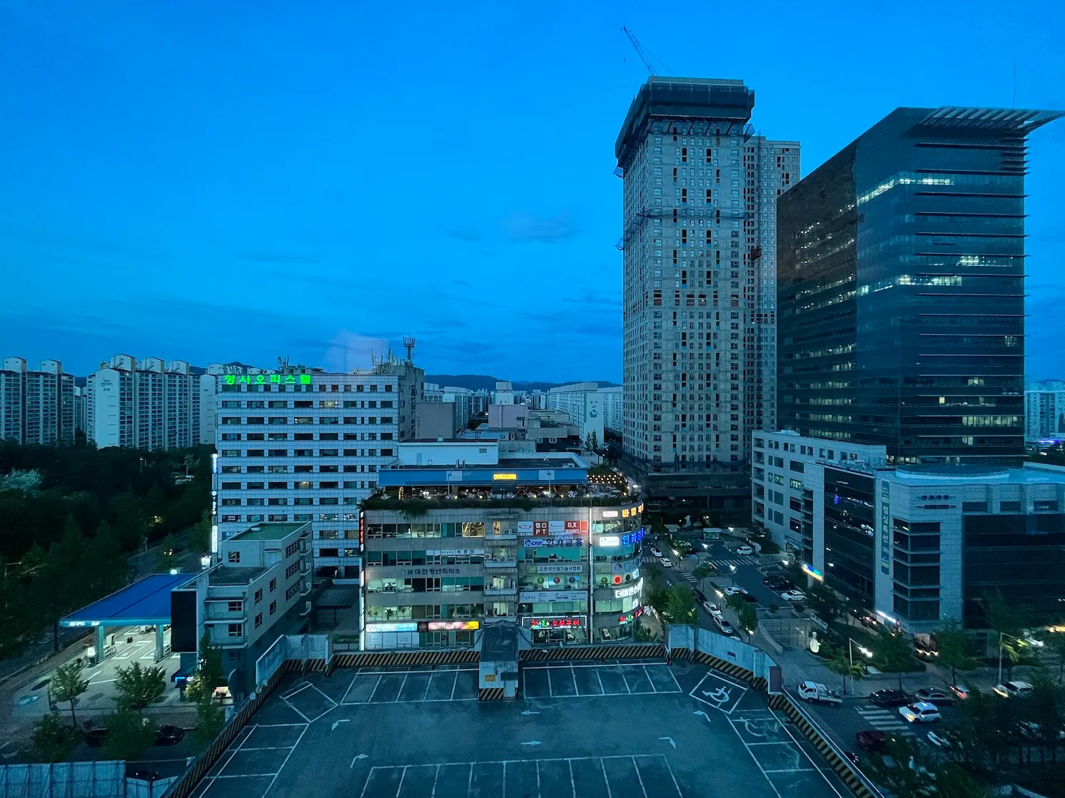 호텔에서 가까운 지하철역으로는 대전지하철 정부청사역이나 시청역인데, 걸어서 10분 정도는 걸립니다.