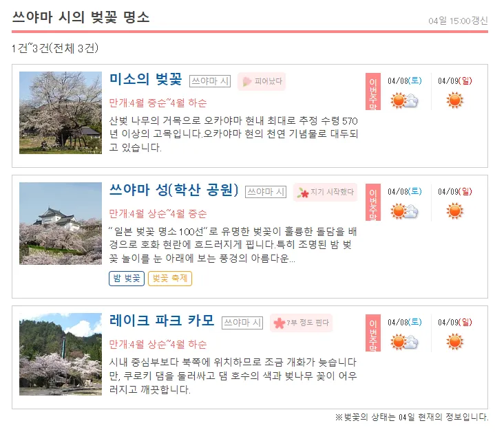 일본기상협회 벚꽃특집 페이지에 나온 쓰야마시 벚꽃 명소 중 하나인 쓰야마성(정확히는 쓰야마 성터)에 가보려고 해요.