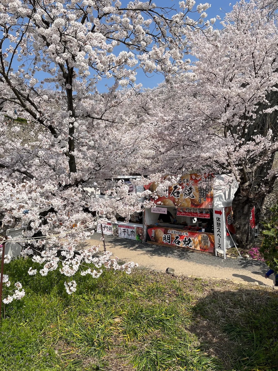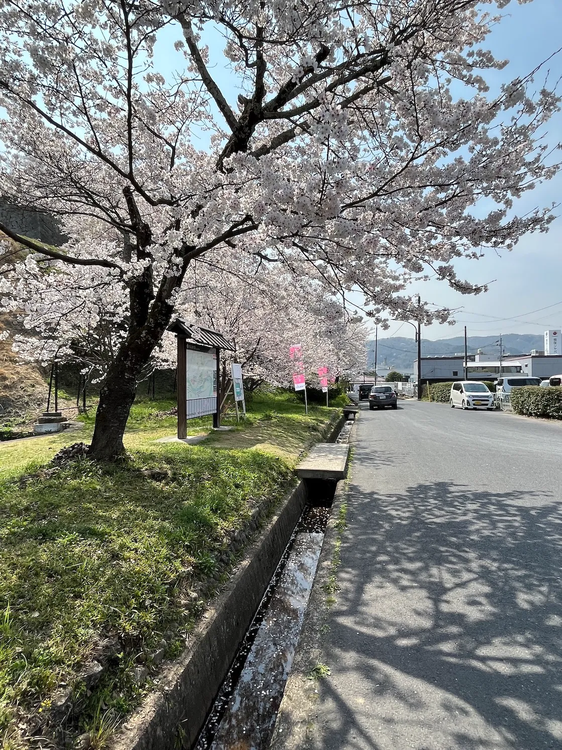 쓰야마 벚꽃 축제에 대한 안내판도 있는데 후원 기업이나 행사 내용 등이 적혀있네요.