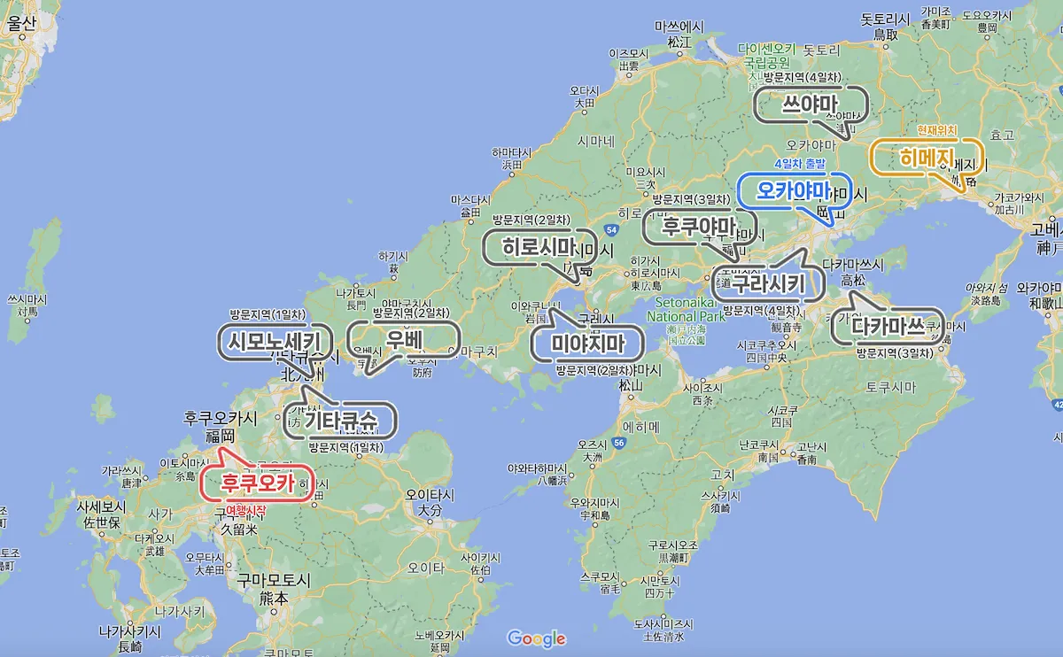 저 앞에 보이는 큰 길이 히메지역으로 향하는 길이네요.