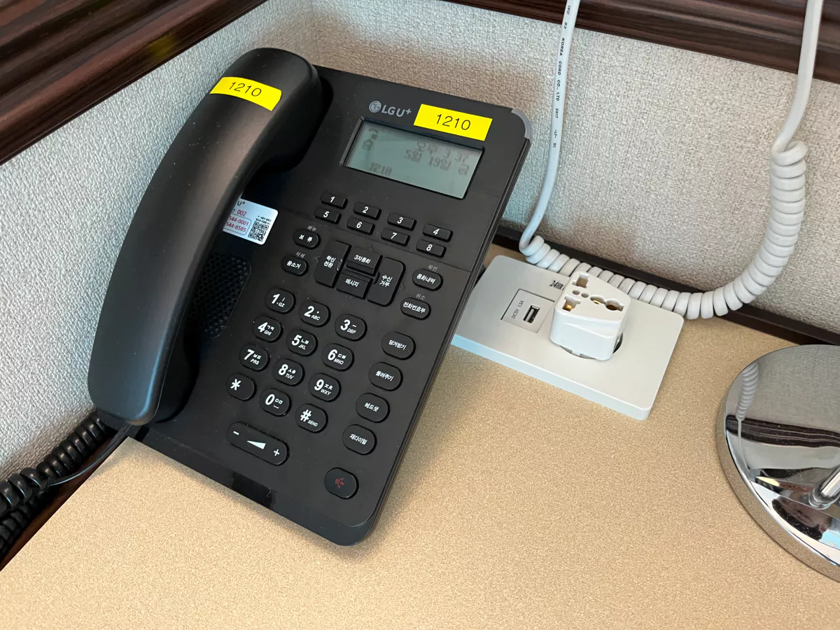 이 호텔에서 체크아웃을 하는 대로 일본을 갈 예정이라 110V 충전기를 챙겨 왔는데 110V-220V 변환 어댑터가 있네요. 프론트데스크에서 대여 가능하다고 했었는데 우연히도 객실에 이미 꽂혀 있었습니다.