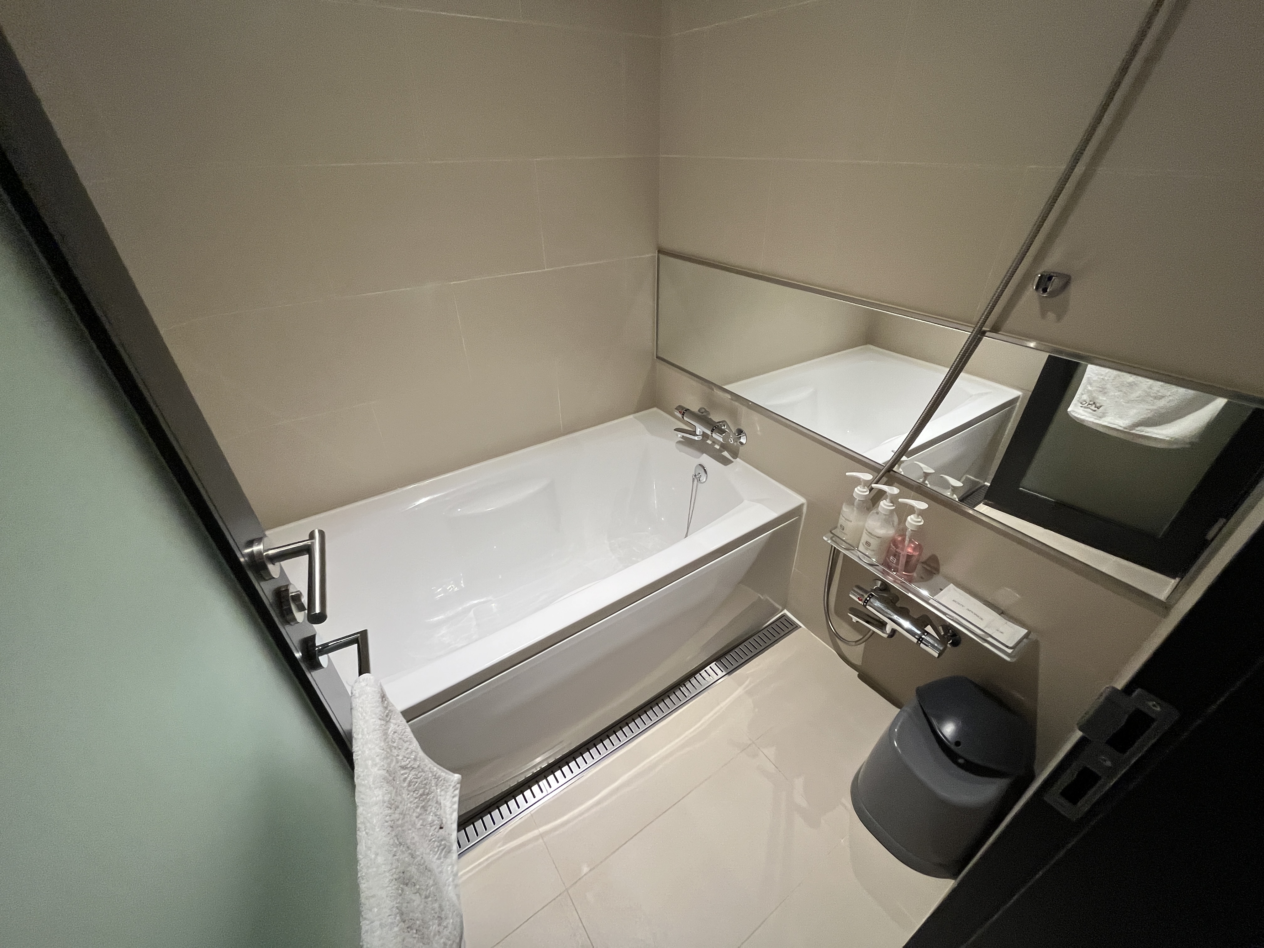 샤워부스로 되어있는 호텔도 많지만 일본 호텔 브랜드라서 그런지 욕조가 있습니다. 따로 공간이 분리되어 있는 욕조공간에 변기도 세면대도 분리되어 있으니 아무래도 더 좁아보이는 느낌이 들 수도 있다고 생각합니다.