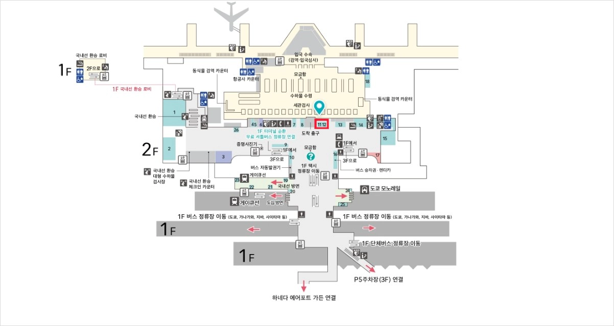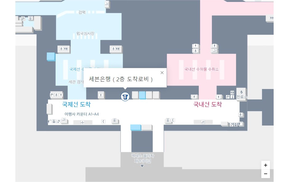 제1터미널 중앙빌딩 1층(도착층): 세븐뱅크/이온뱅크 [06:00~23:00]