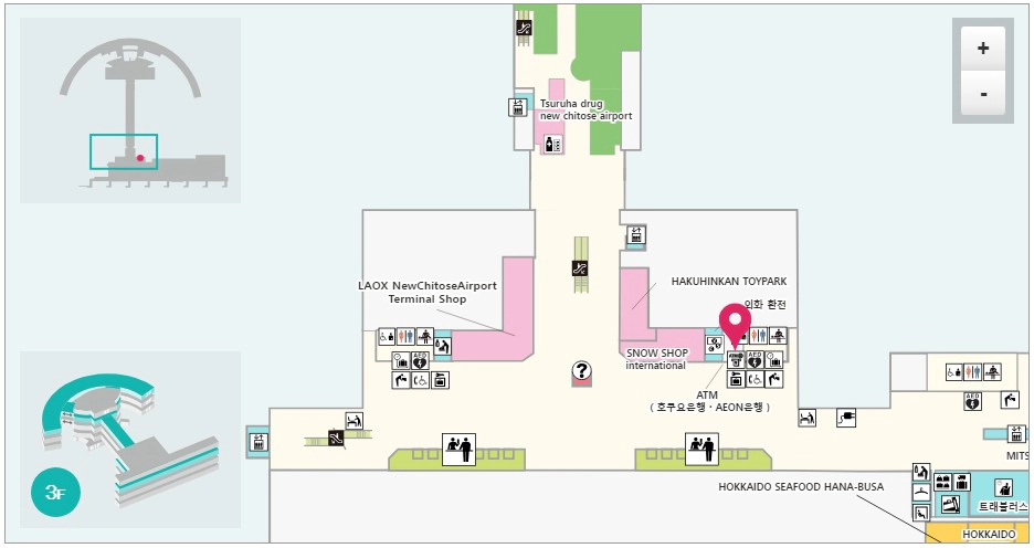 신치토세공항에는 아래 내용과는 별개로 국내선 터미널 2층에 세븐뱅크와 이온뱅크 ATM이 각 2곳씩 있어요!