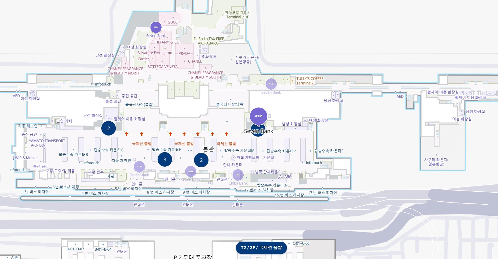 제2터미널 3층(출발층): 세븐뱅크(2곳)