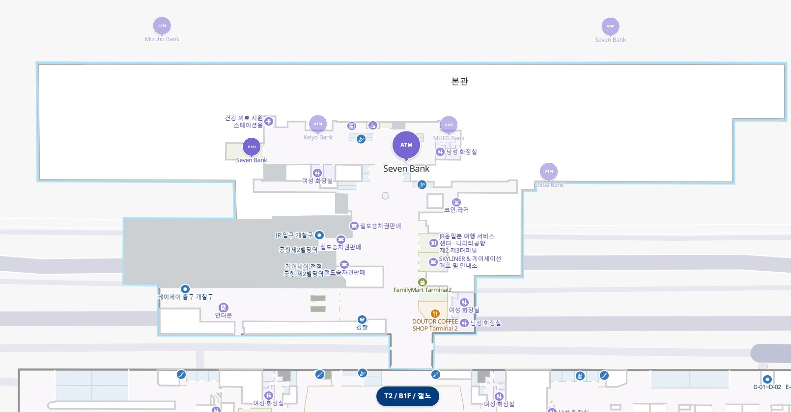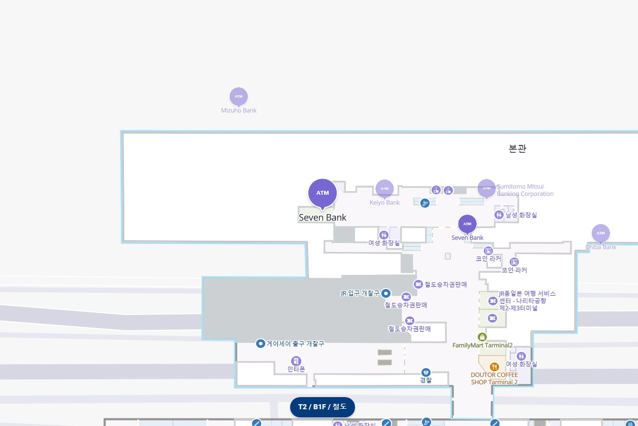 제2터미널 2층(출발층): 세븐뱅크 [04:40~21:20]