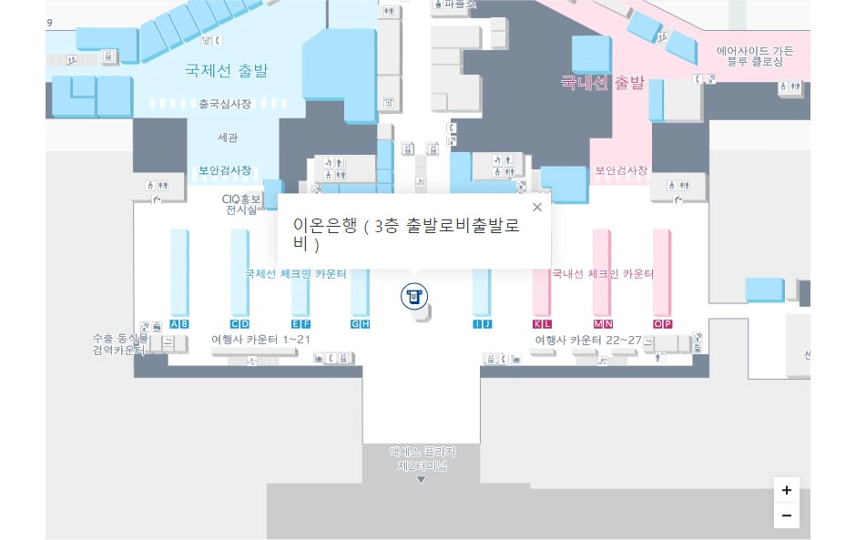 제1터미널 북쪽윙 4층(출발층): 이온뱅크(2곳) [06:00~23:00]