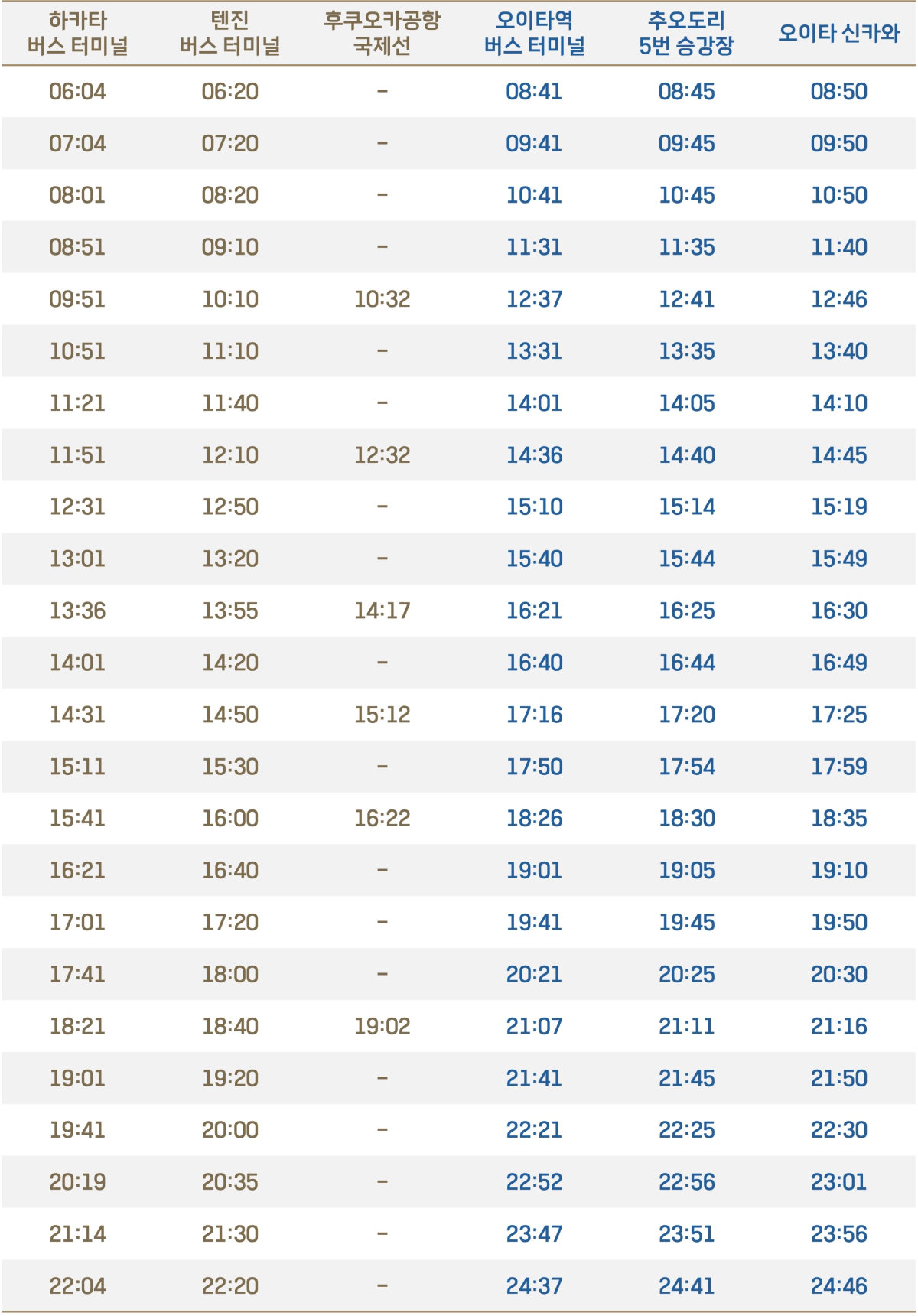 오이타 → 후쿠오카 시내(하카타/텐진/공항) [평일]