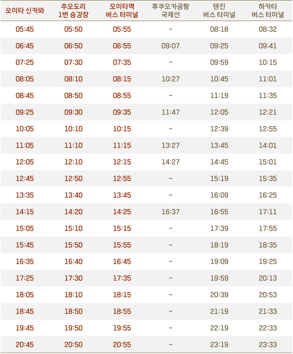후쿠오카~오이타 버스의 자세한 안내는 아래 PDF 또는 링크를 참고하세요!