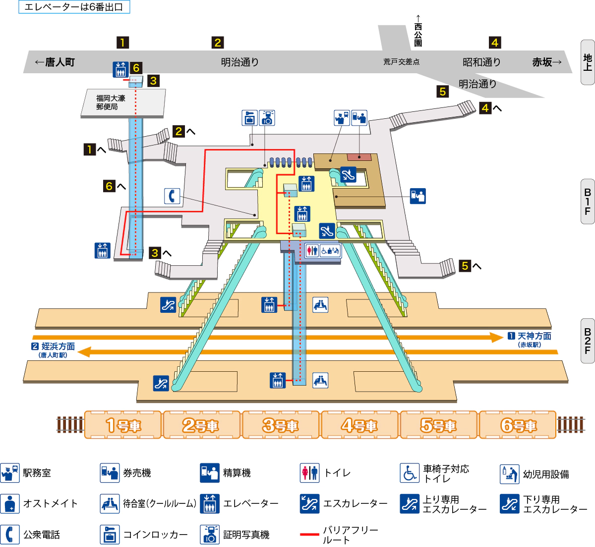 아카사카역 구내도(출처: 후쿠오카시 지하철)