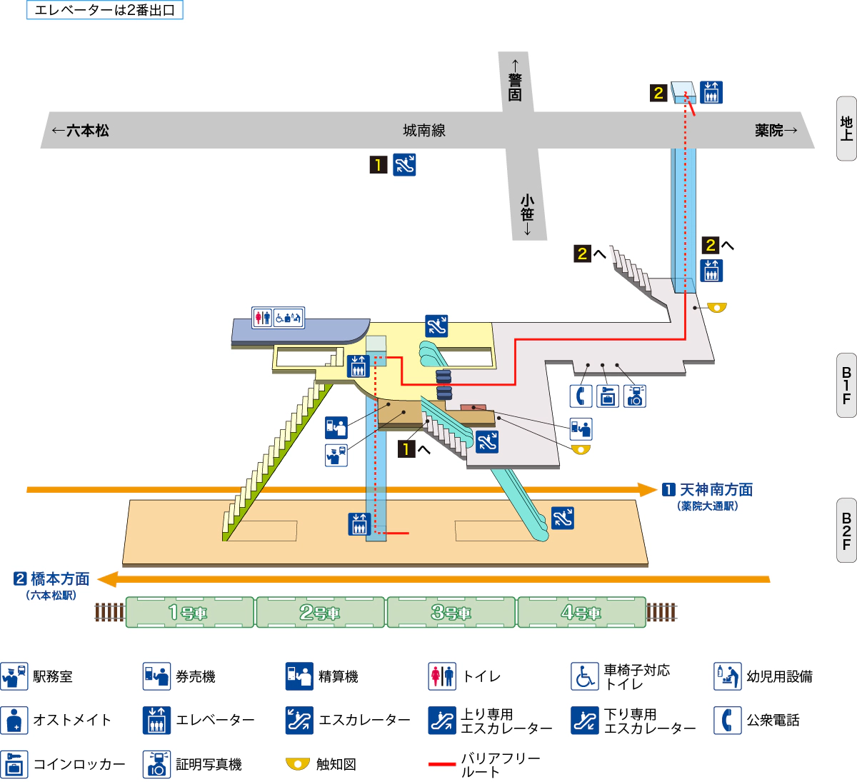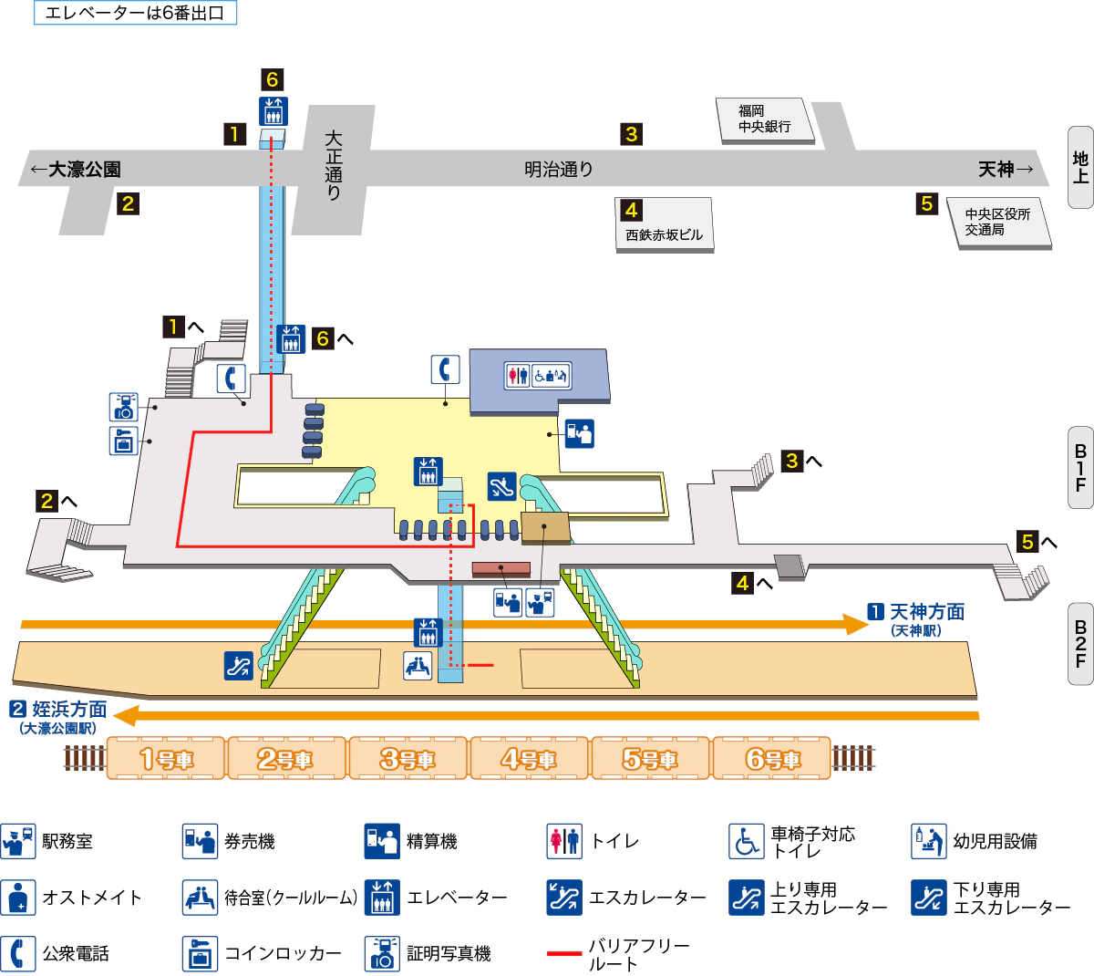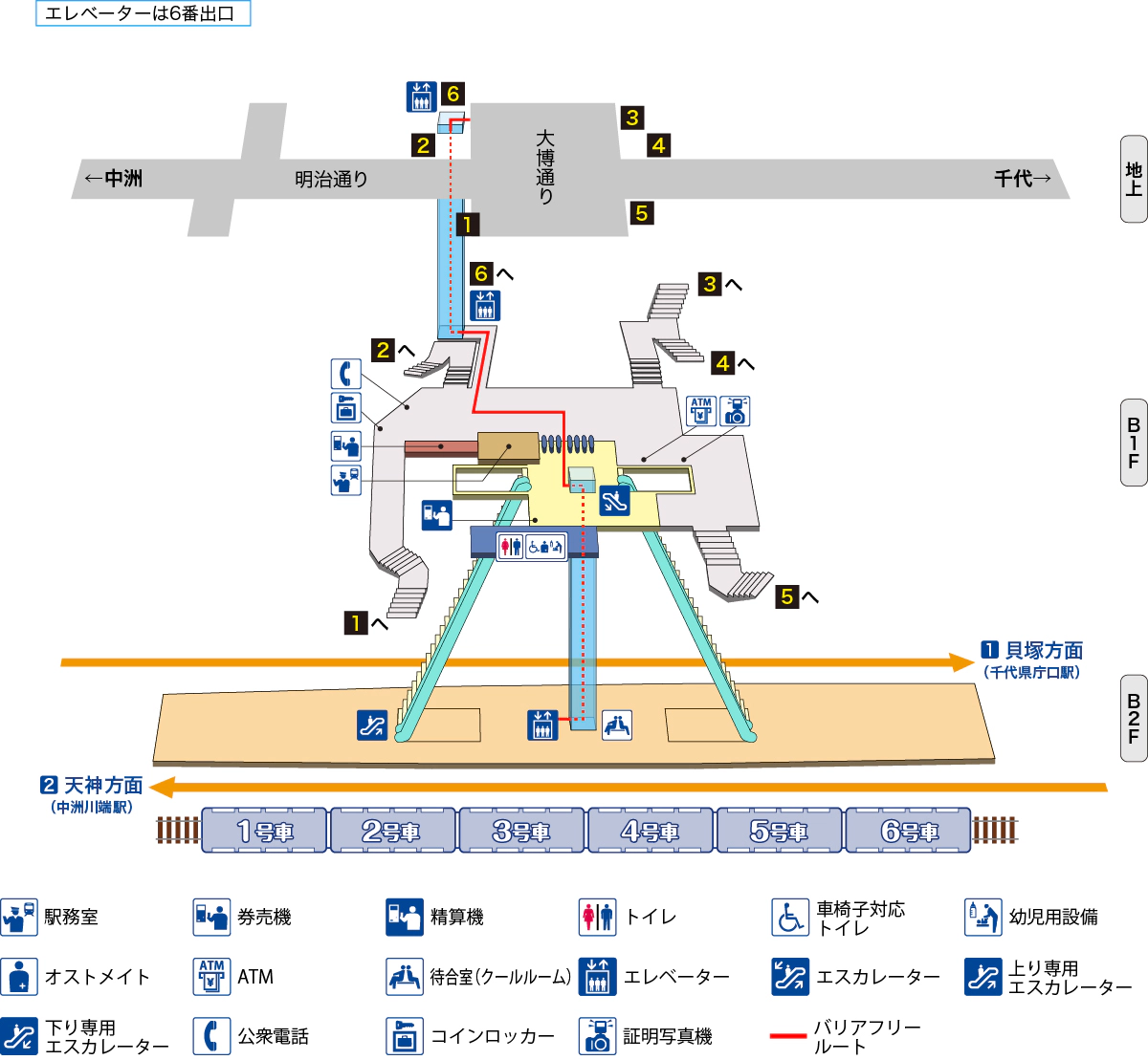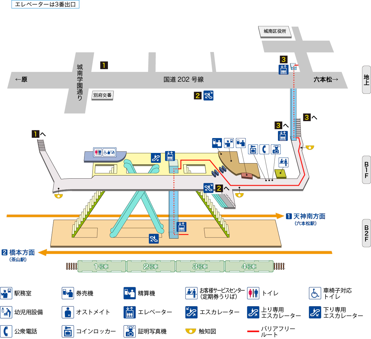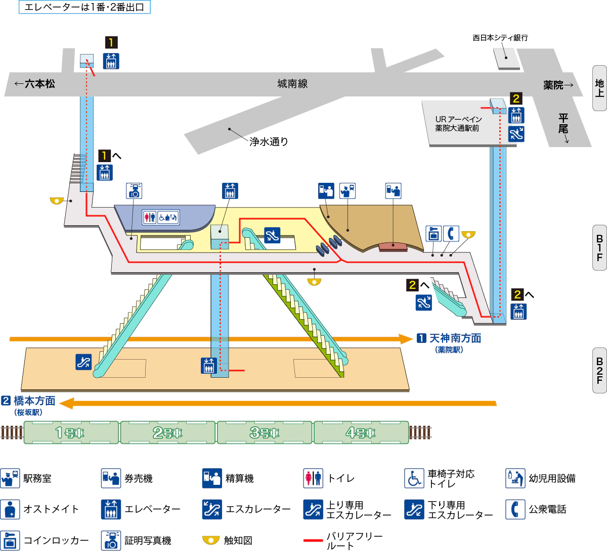 롯폰마쓰역 구내도(출처: 후쿠오카시 지하철)