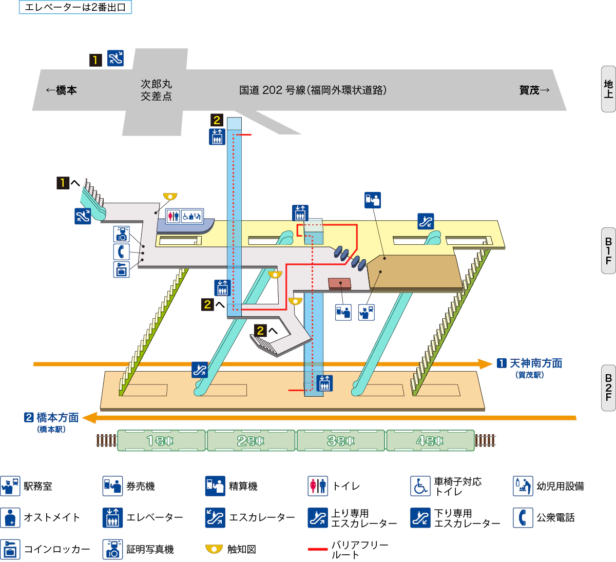 가모역 구내도(출처: 후쿠오카시 지하철)