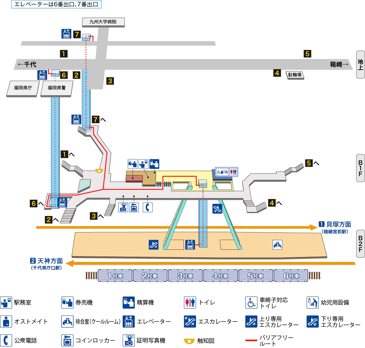 하코자키큐다이마에역 구내도(출처: 후쿠오카시 지하철)