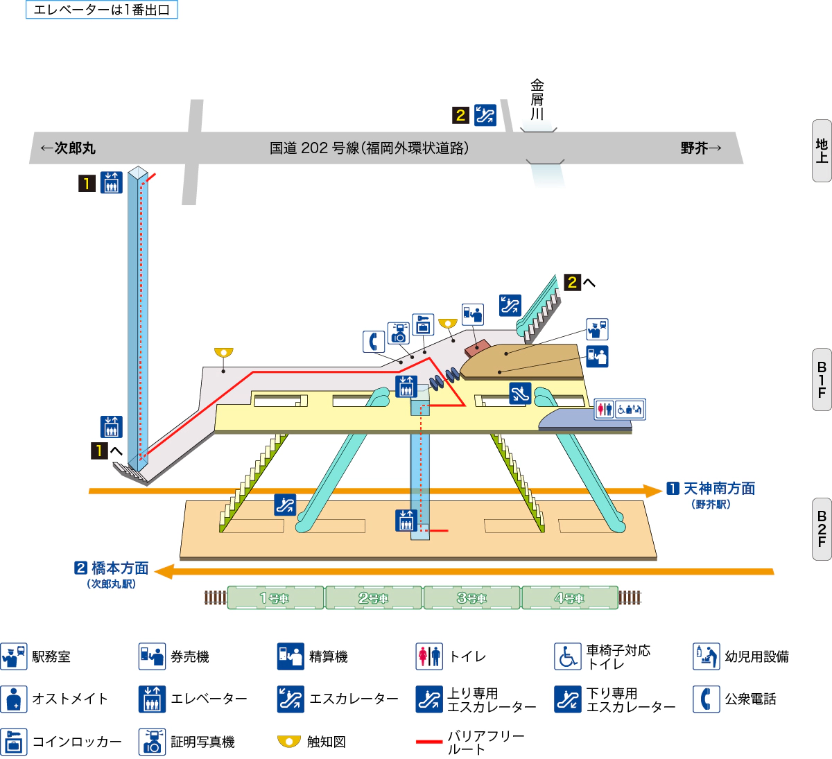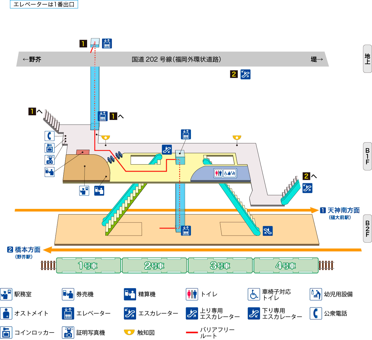 노케역 구내도(출처: 후쿠오카시 지하철)