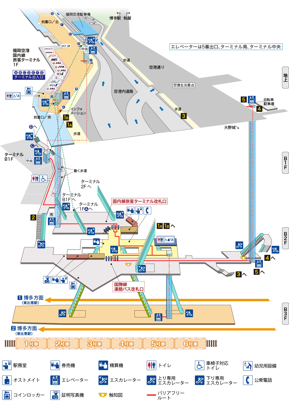 후쿠오카공항역 구내도(출처: 후쿠오카시 지하철)