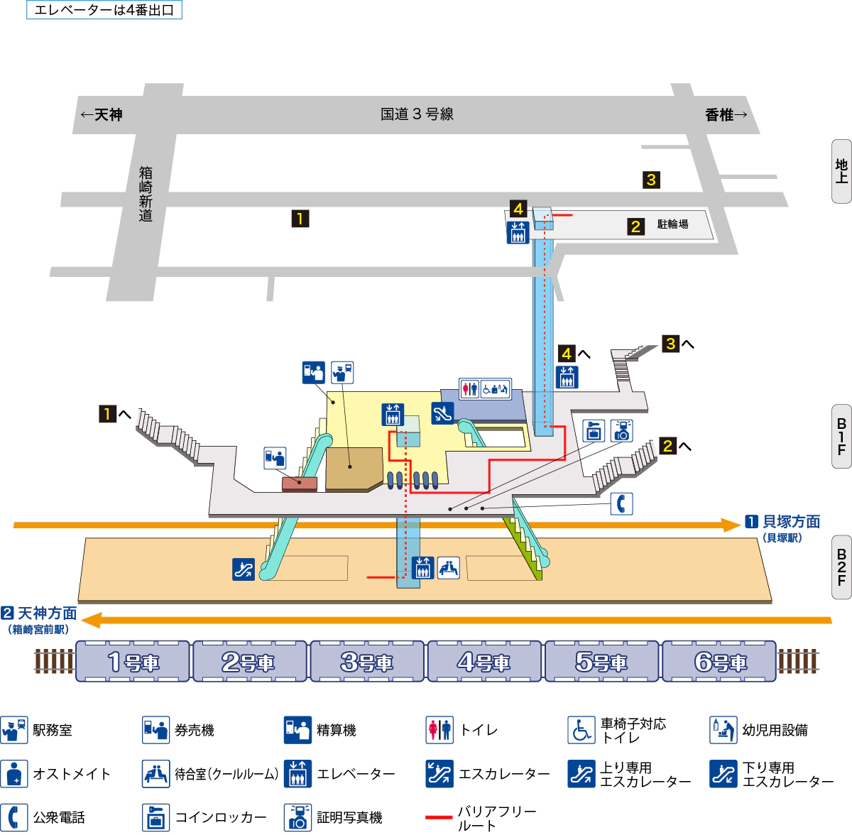 하코자키미야마에역 구내도(출처: 후쿠오카시 지하철)