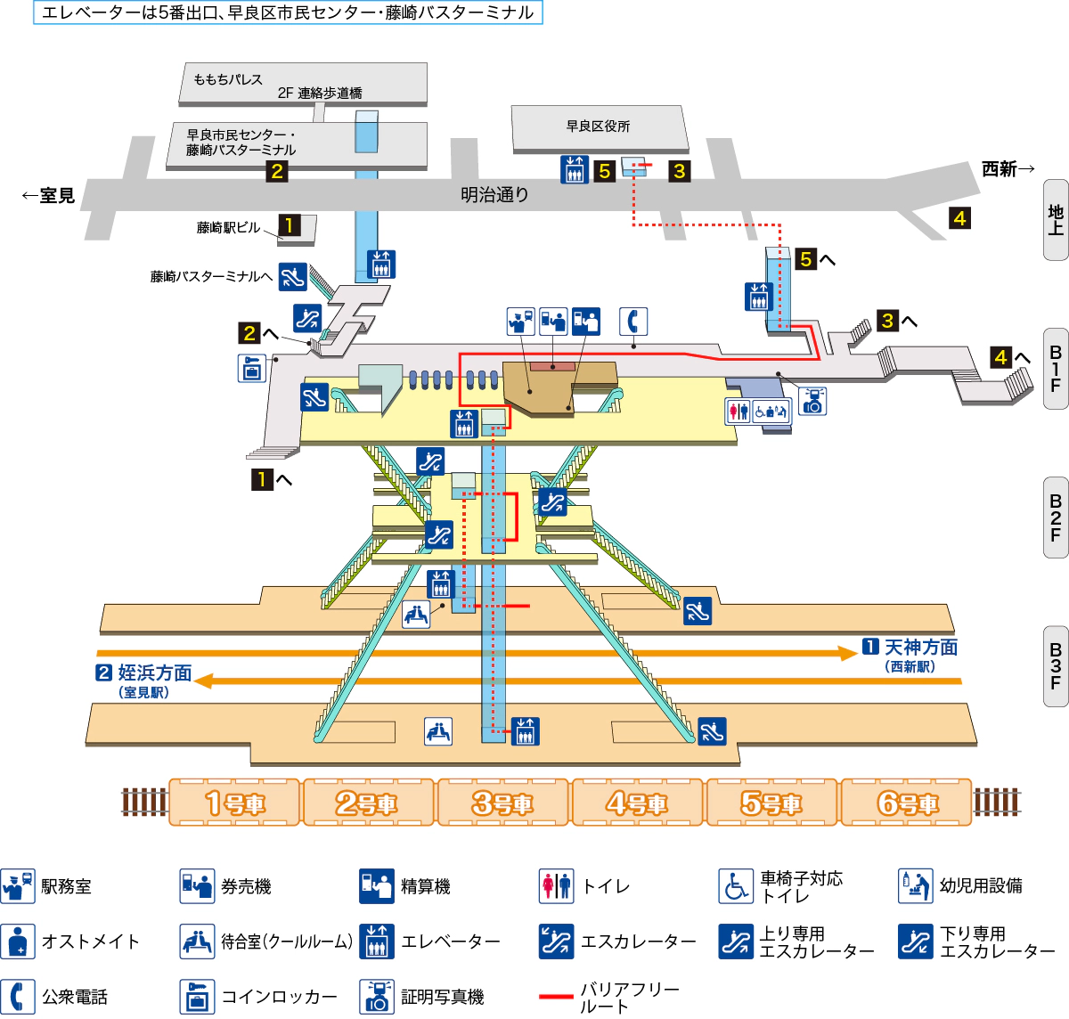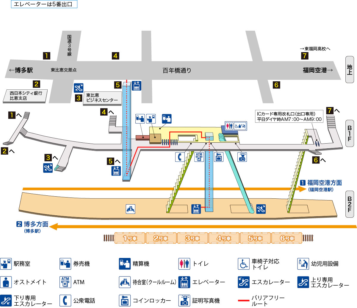 베후역 구내도(출처: 후쿠오카시 지하철)