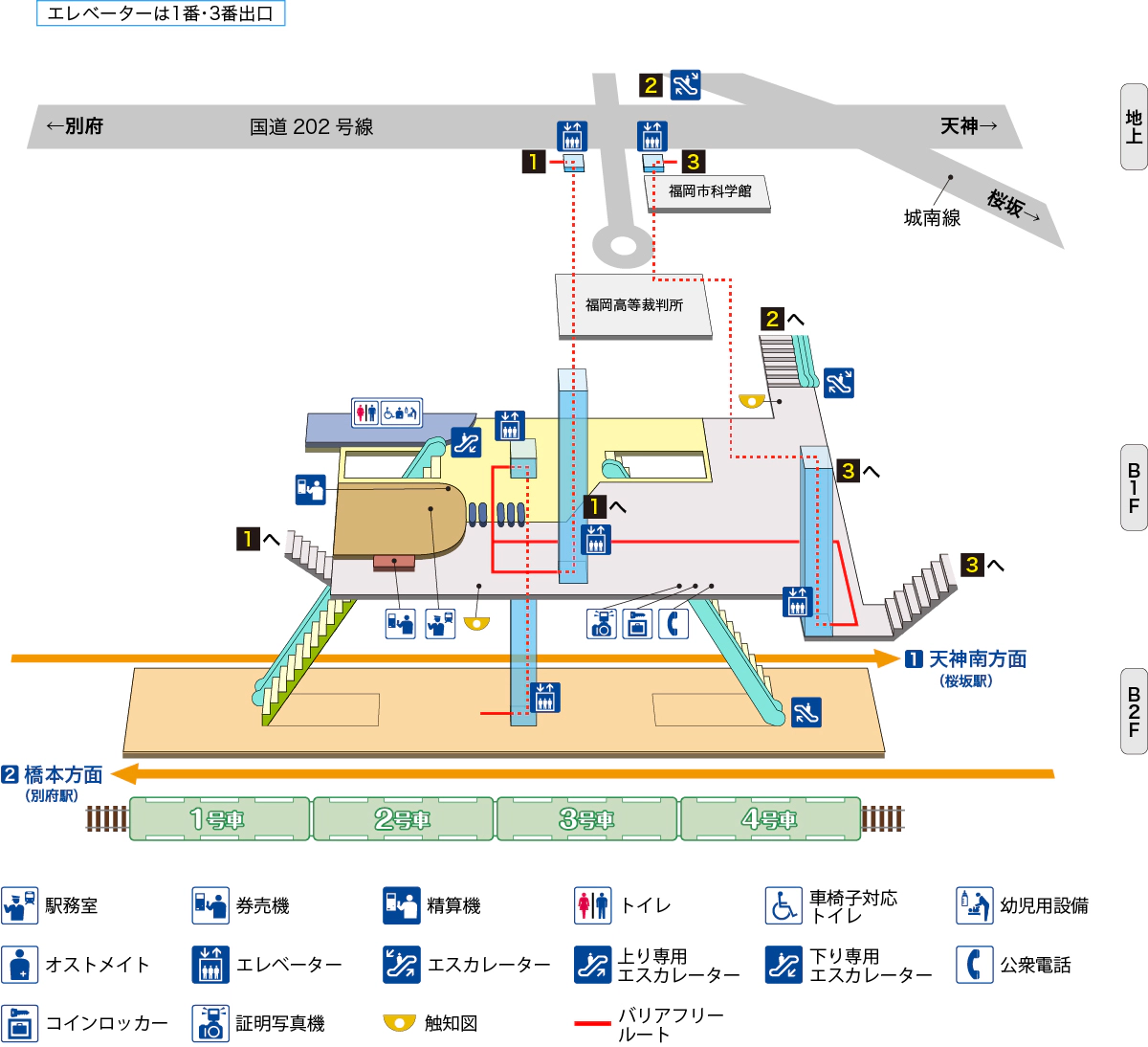 덴진미나미역 구내도(출처: 후쿠오카시 지하철)