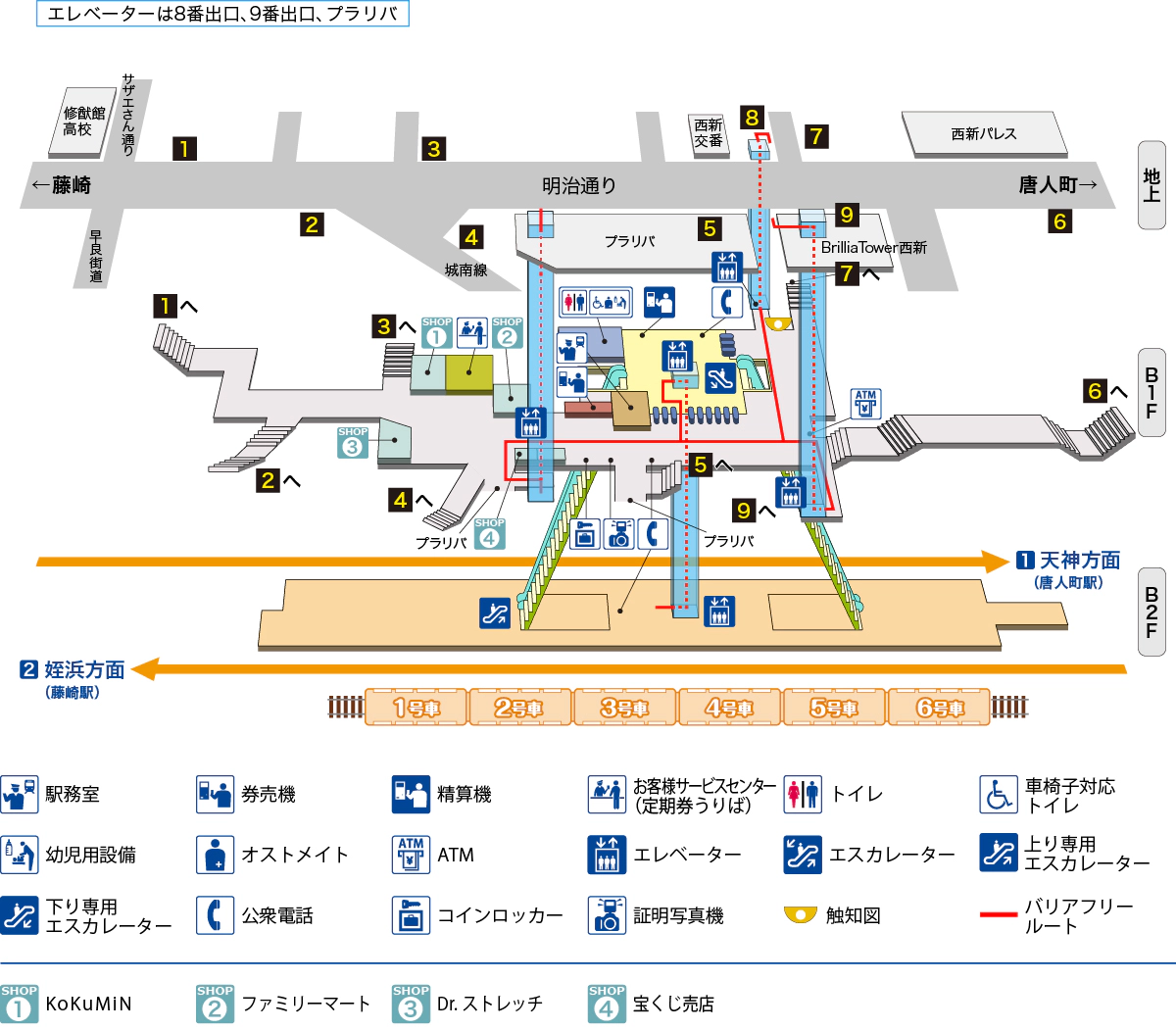 나나쿠마역 구내도(출처: 후쿠오카시 지하철)